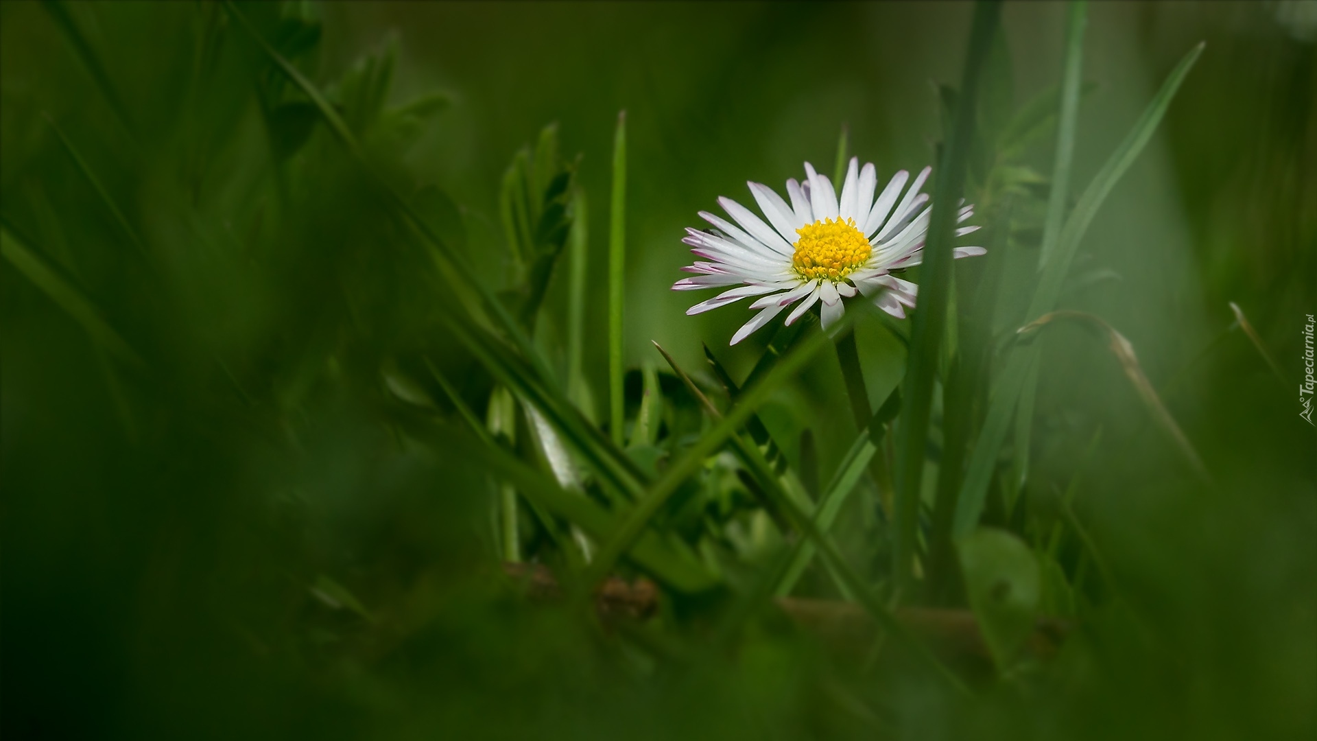 Edytor tapety: Biała stokrotka w trawie