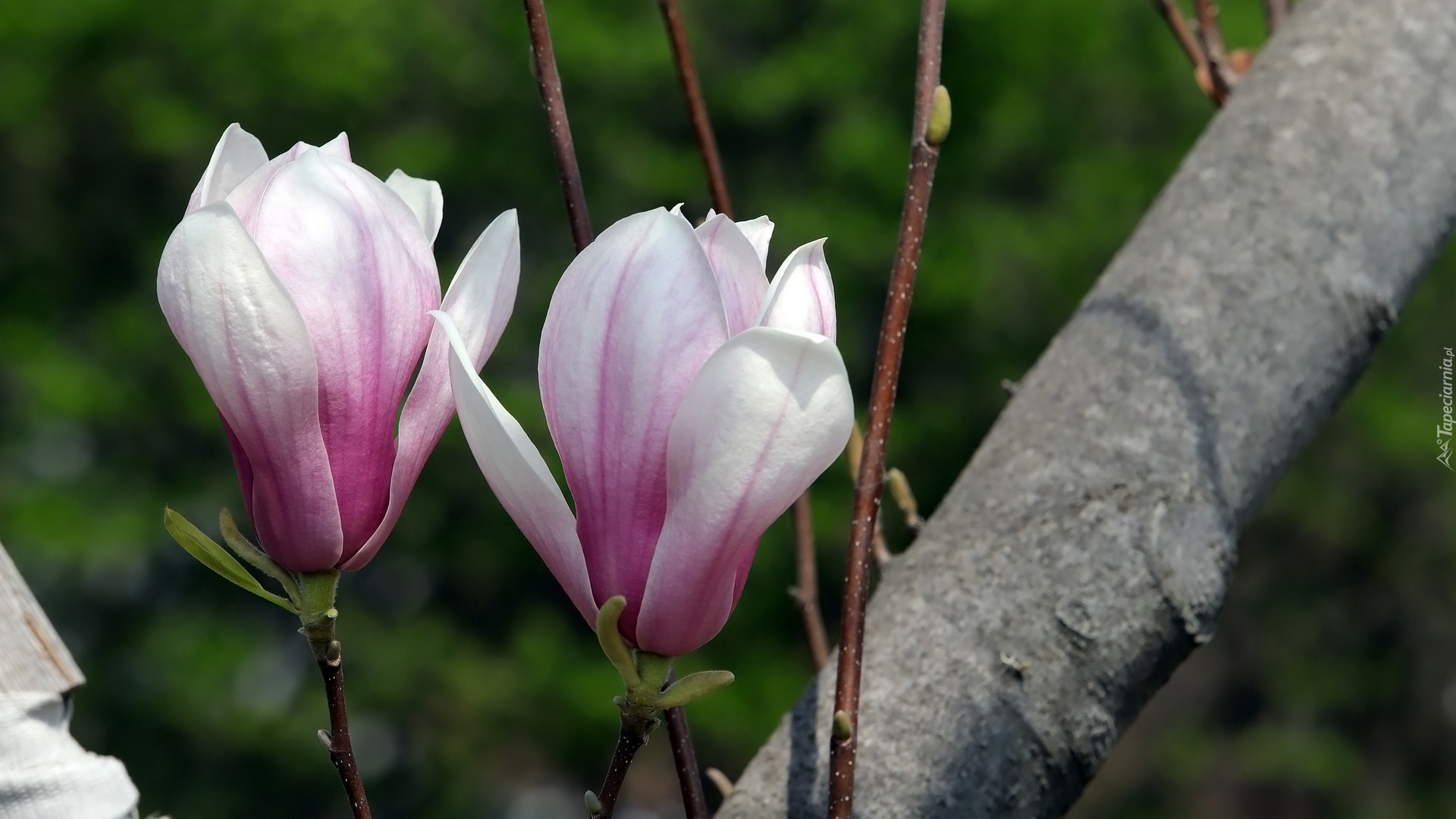 Edytor tapety: Dwa rozkwitające kwiaty magnolii
