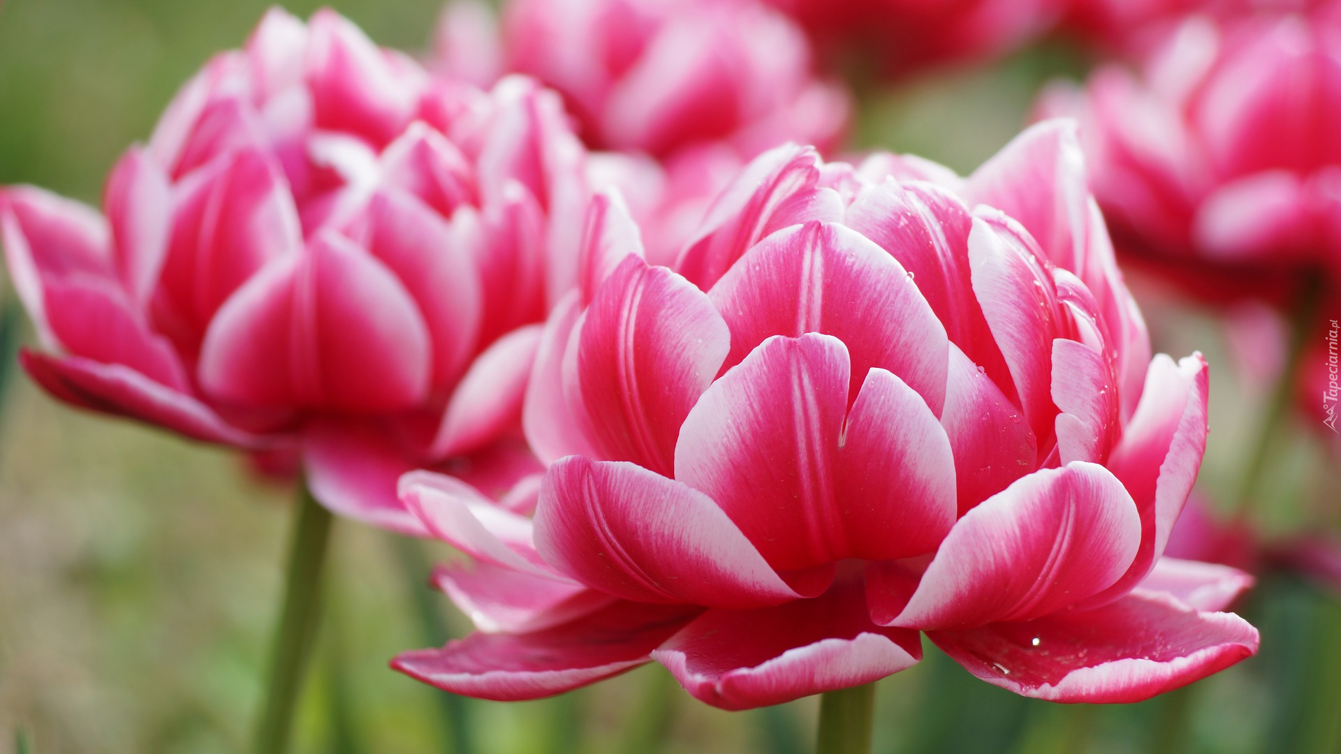 Edytor tapety: Zroszone biało-różowe rozwinięte tulipany