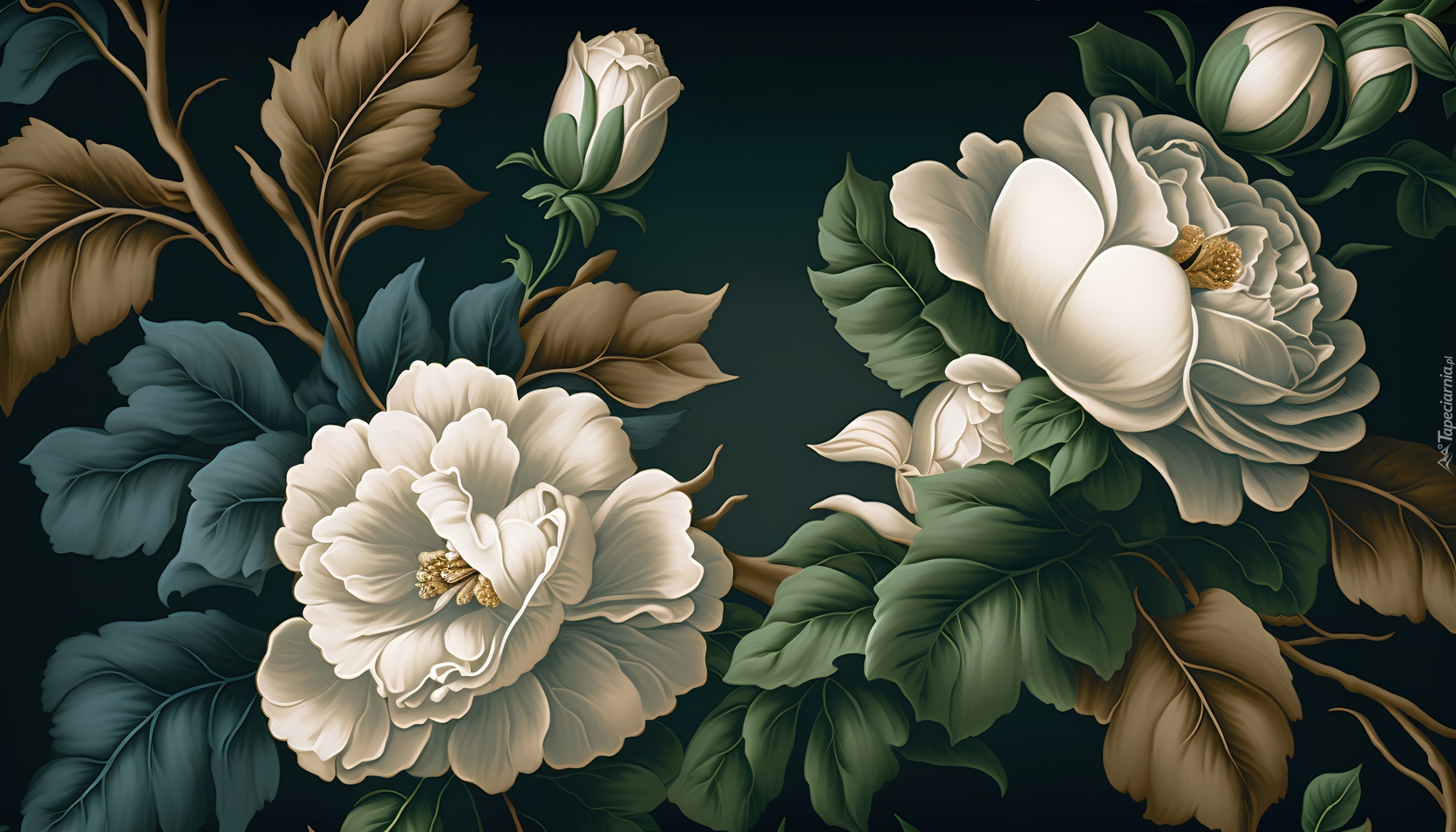 Edytor tapety: Białe piwonie w grafice