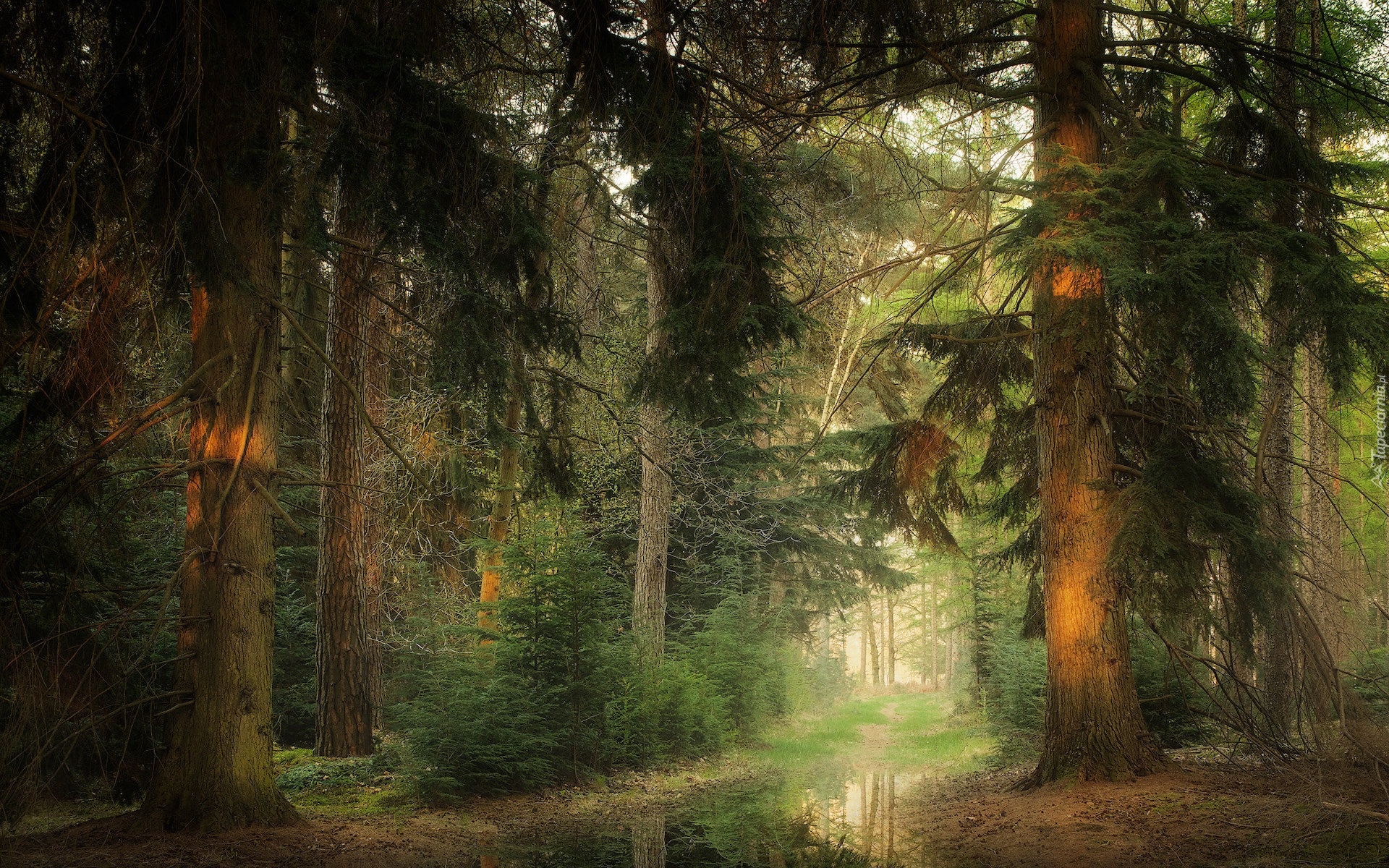 Edytor tapety: Kałuża na drodze w lesie