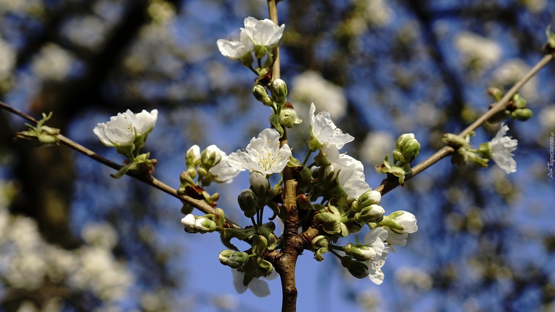 Edytor tapety: Gałązka z białymi kwiatami i pąkami wiśni