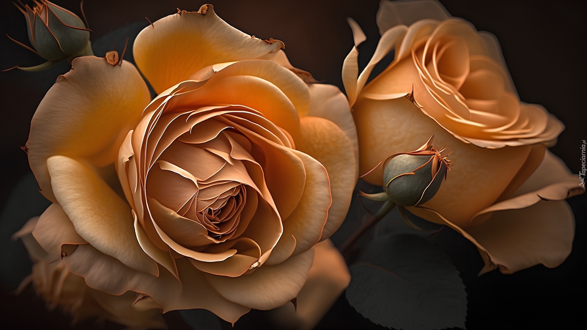 Edytor tapety: Dwie róże z pąkiem w grafice