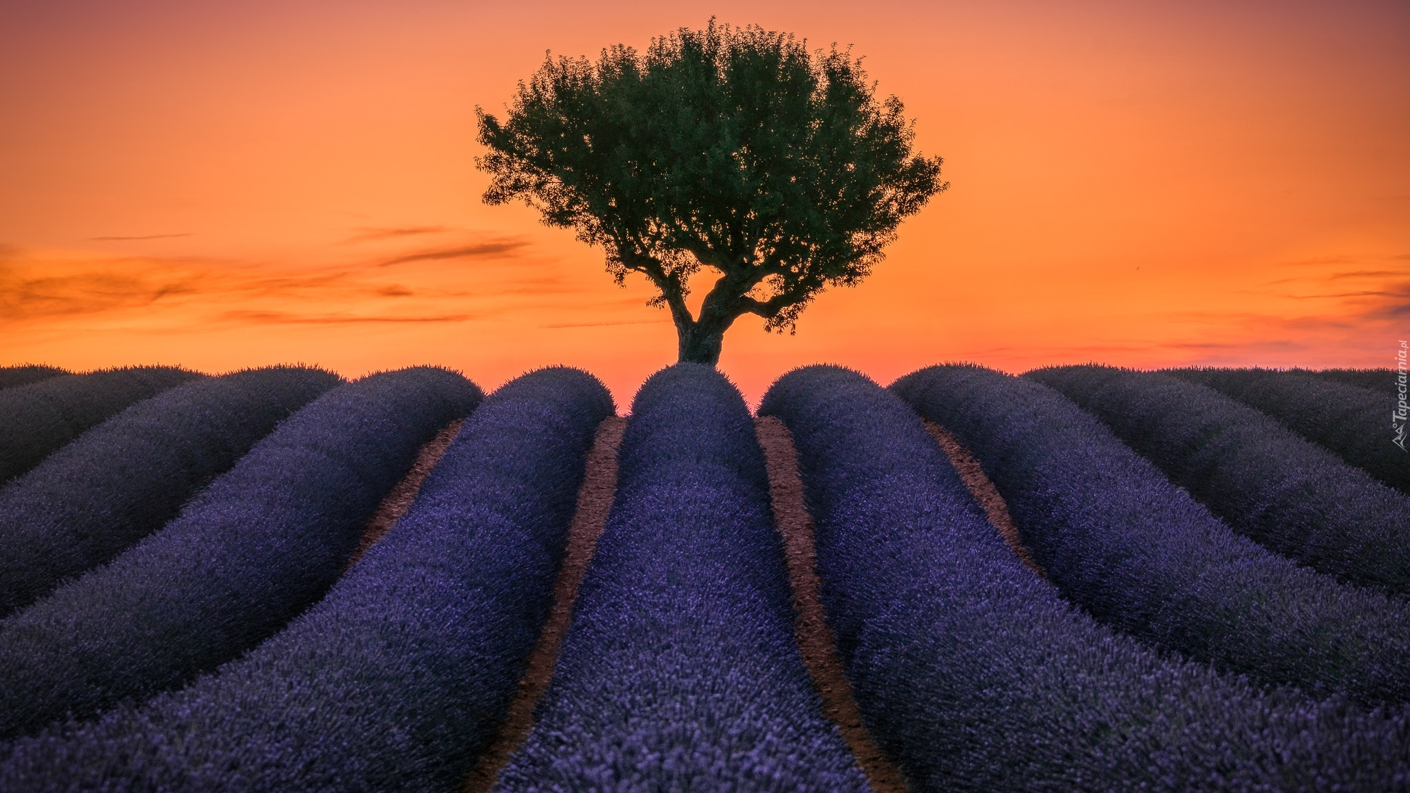 Edytor tapety: Drzewo na plantacji lawendy w Valensole
