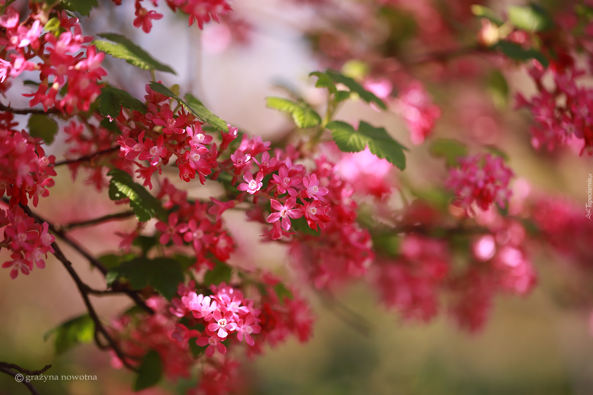 Edytor tapety: Kwiaty porzeczki krwistej na krzewie