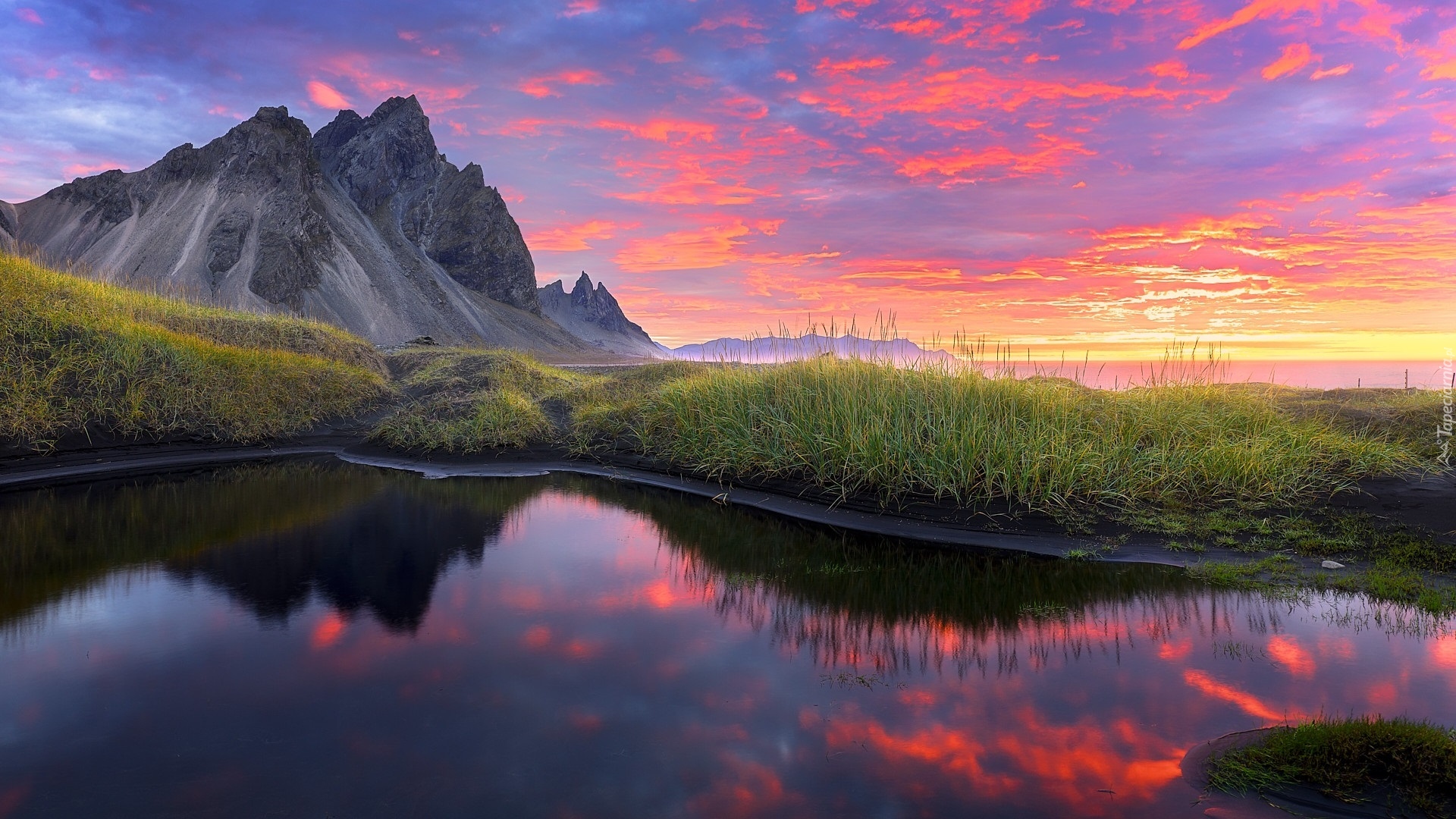Edytor tapety: Kolorowe niebo nad szczytem Vestrahorn w Islandii
