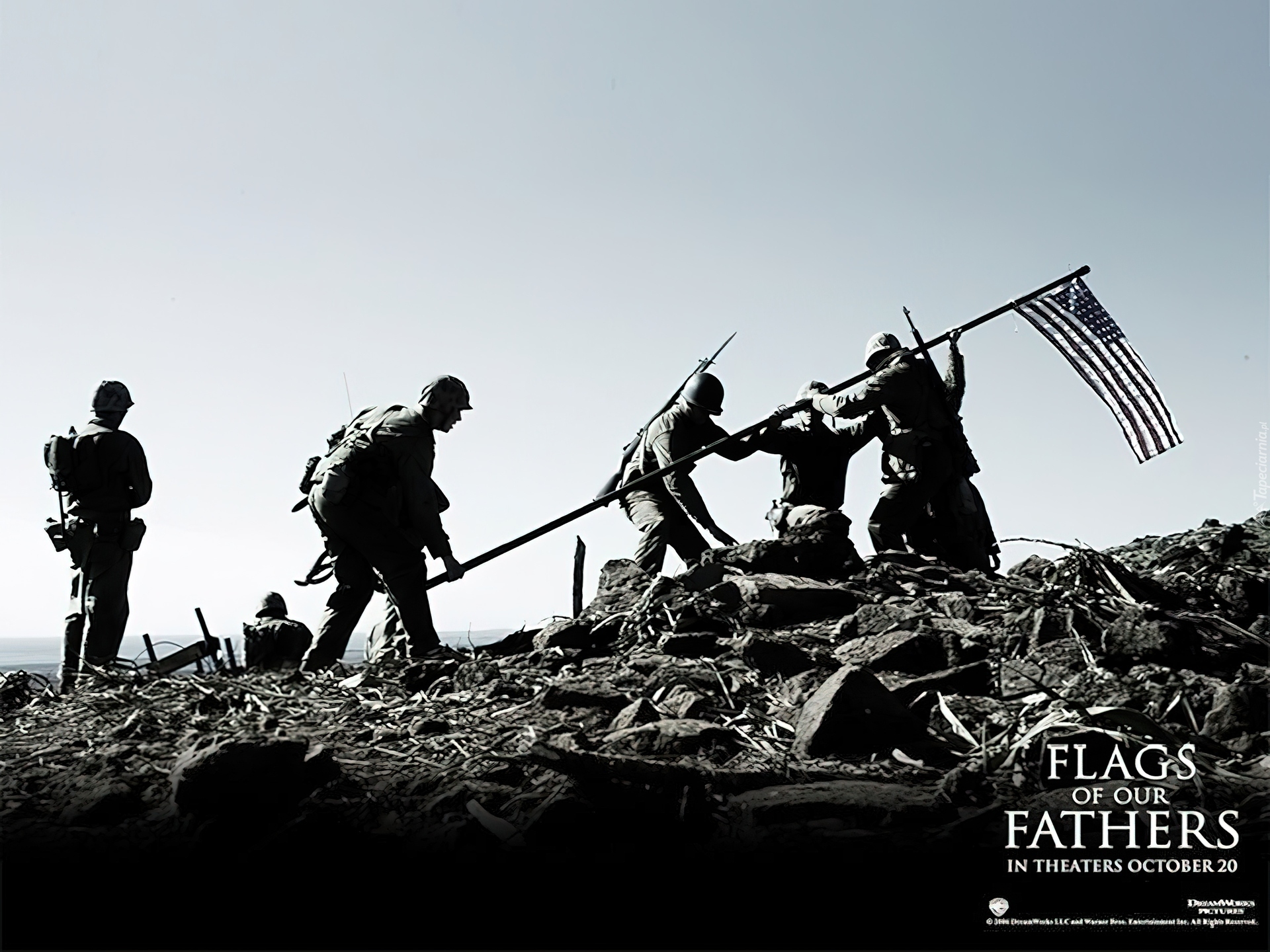 Edytor tapety: Flags Of Our Fathers, flaga, żołnierze, kamienie