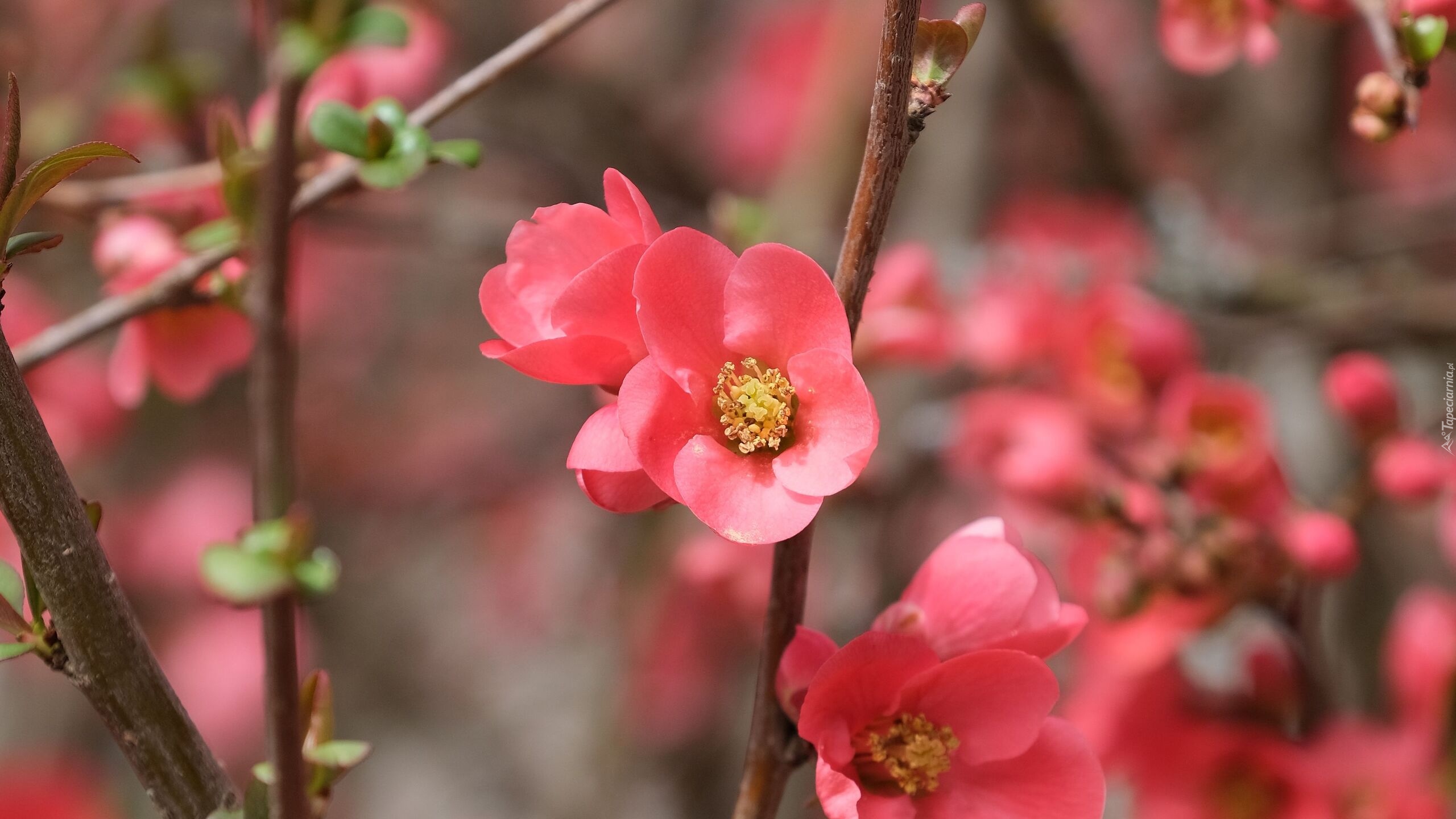 Edytor tapety: Gałązka z kwiatami pigwowca japońskiego