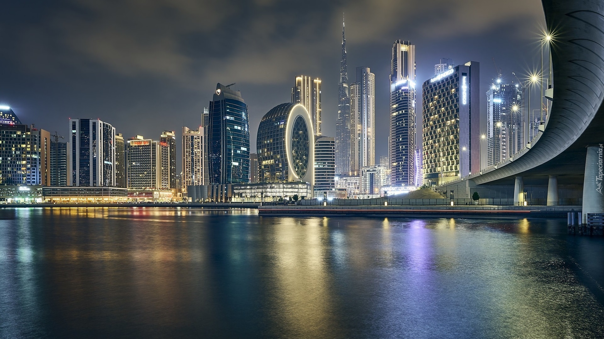 Edytor tapety: Widok na wieżowce w Dubaju nocą