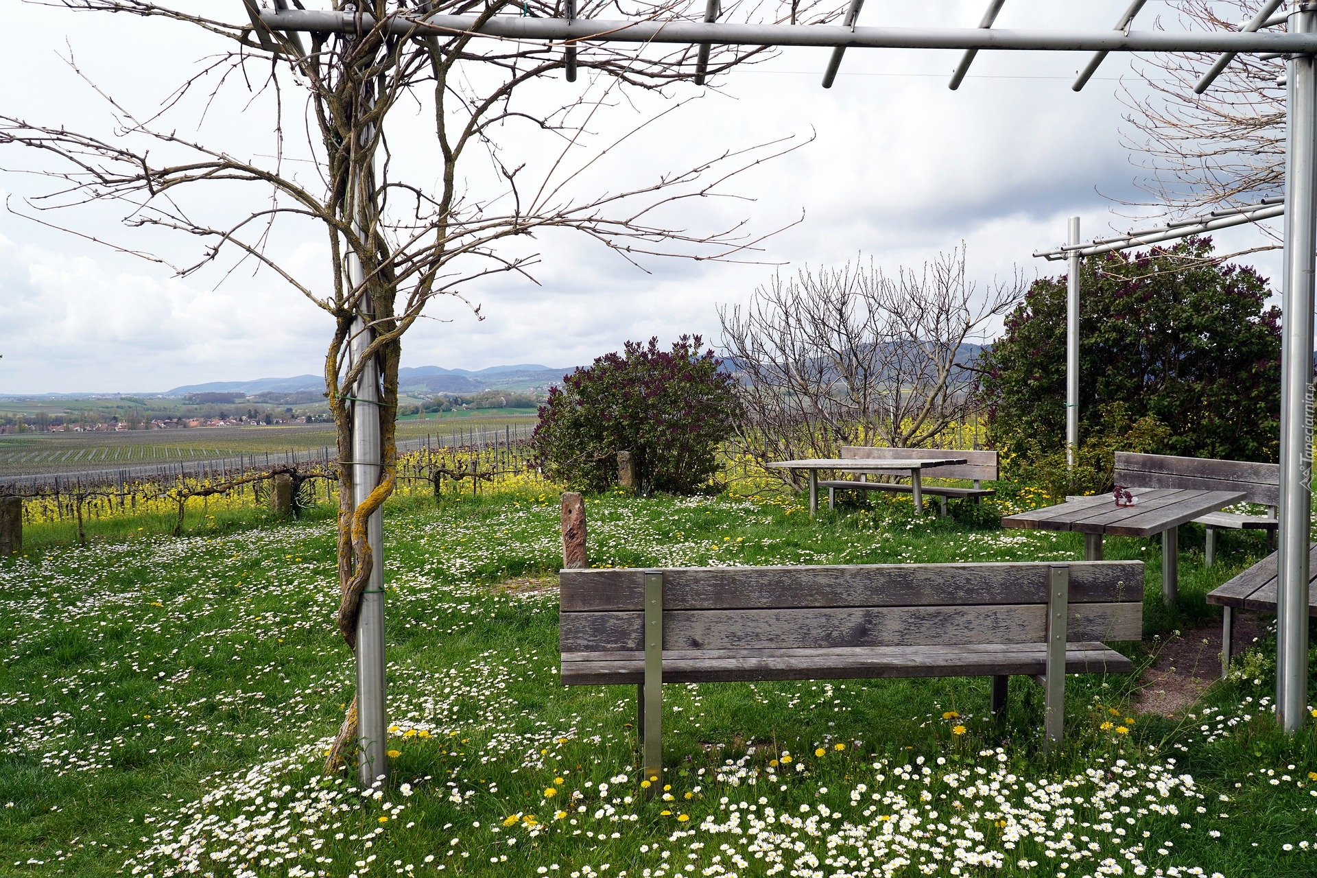 Edytor tapety: Polne kwiaty obok stolików i ławek