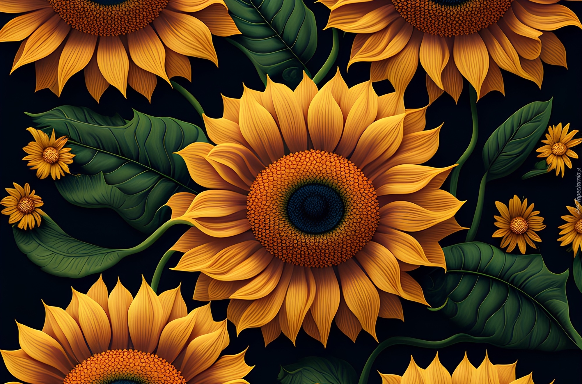 Edytor tapety: Słoneczniki z liśćmi w 2D