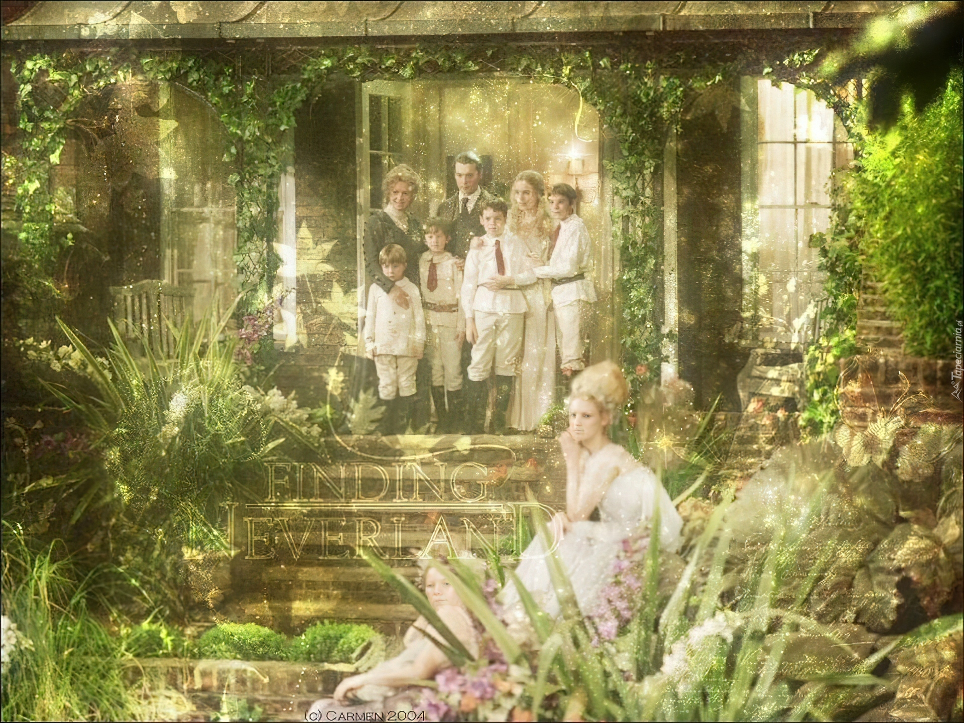 Edytor tapety: Finding Neverland, schody, ogród, postacie