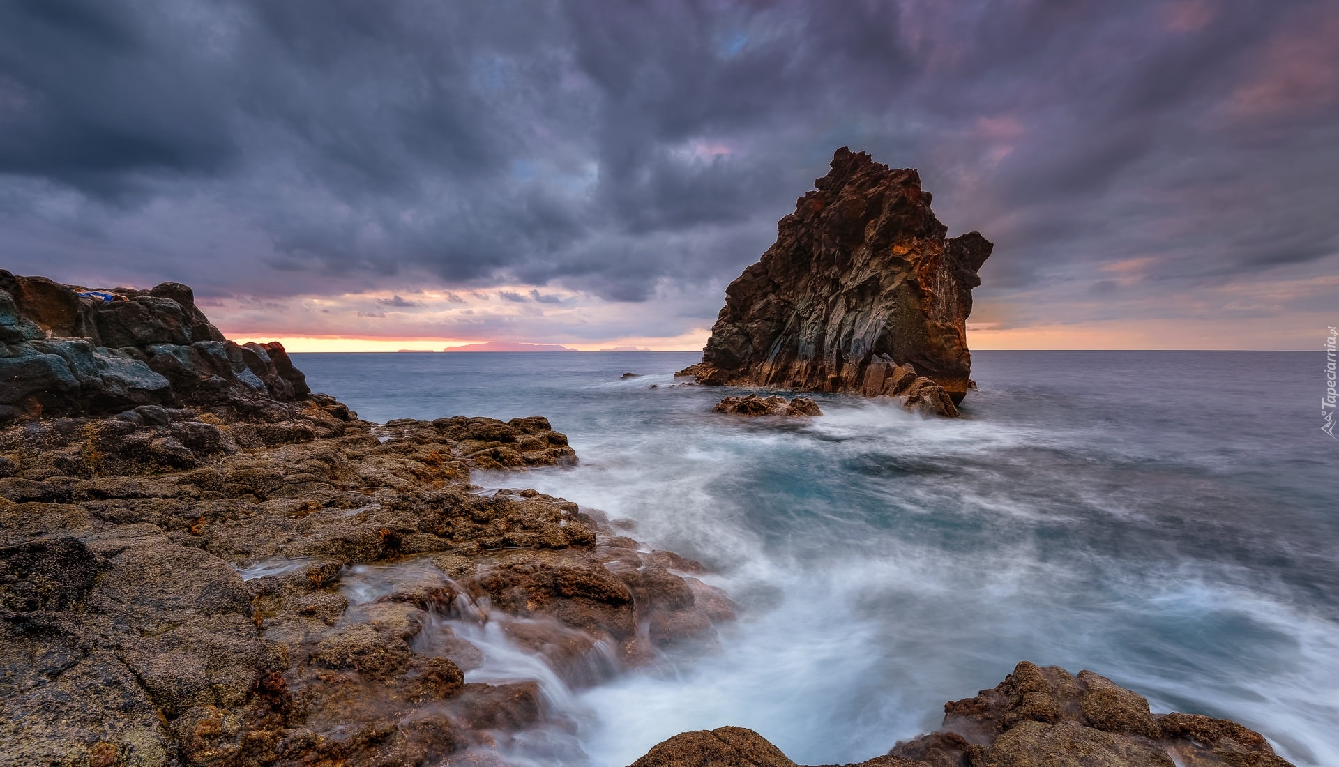 Edytor tapety: Ciemne chmury nad skalistym wybrzeżem Madery