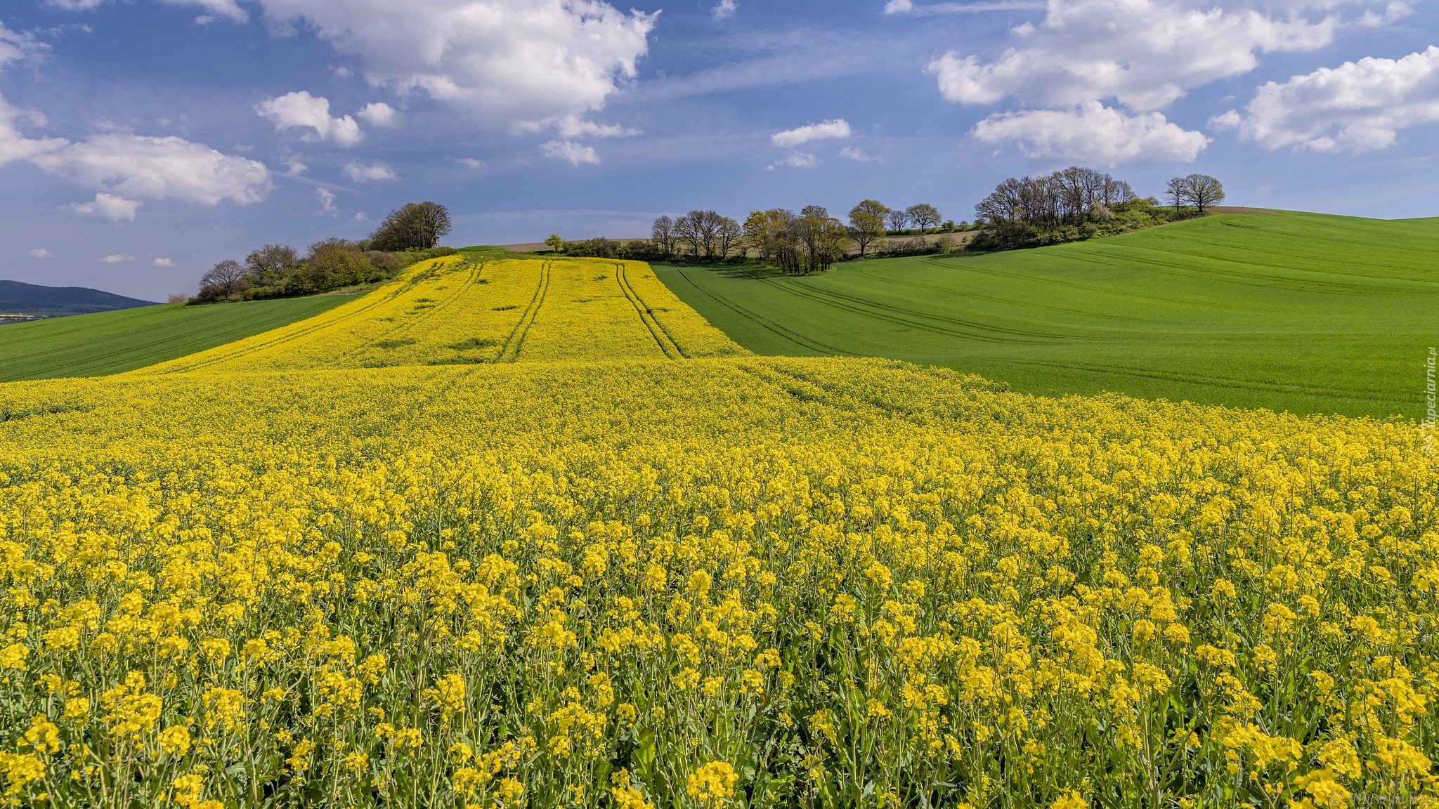 Edytor tapety: Pole rzepaku na wzgórzu