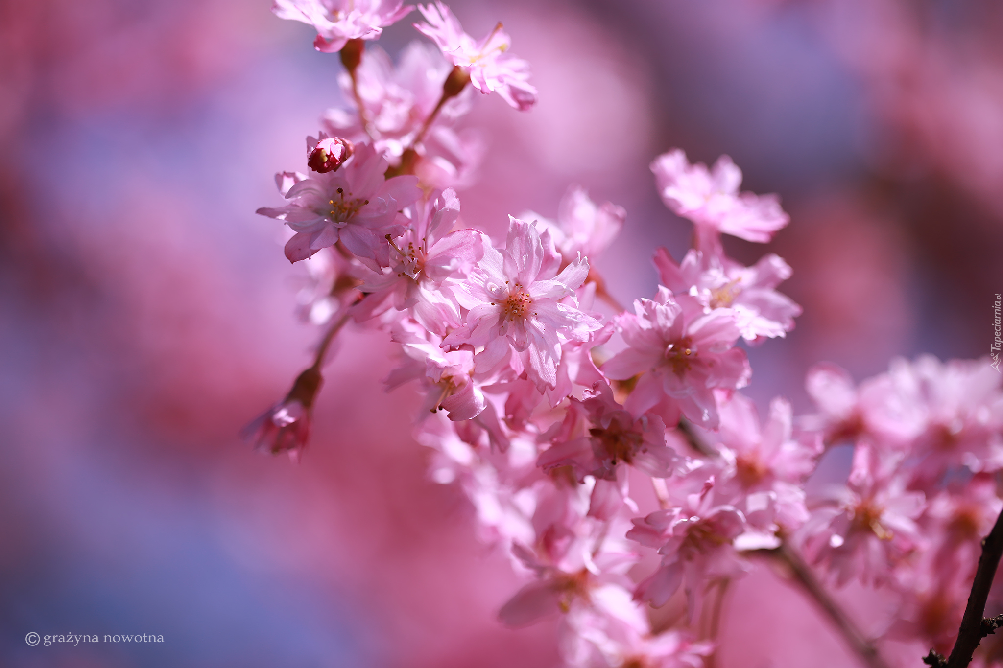 Edytor tapety: Rozświetlone słońcem kwiaty wiśni ozdobnej
