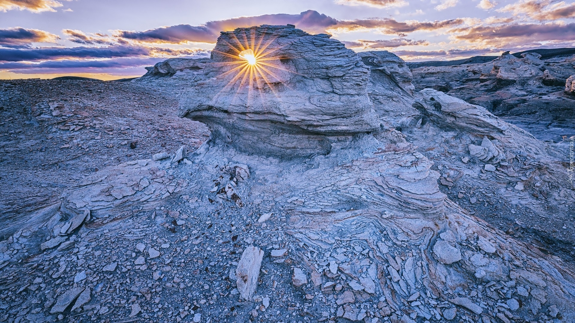 Edytor tapety: Szczyt Factory Butte i promienie słońca