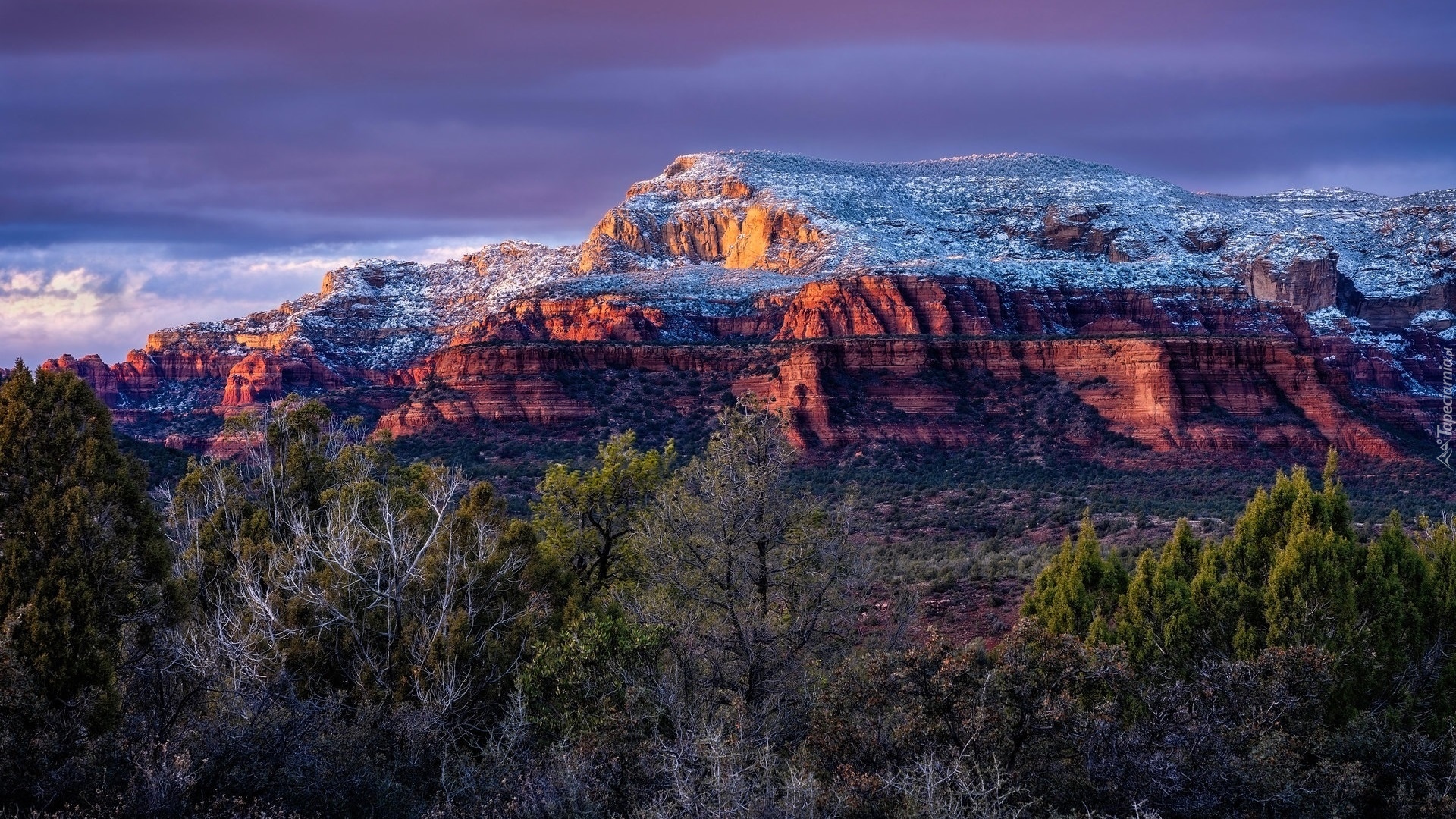Edytor tapety: Ośnieżone drzewa i skały w Sedonie
