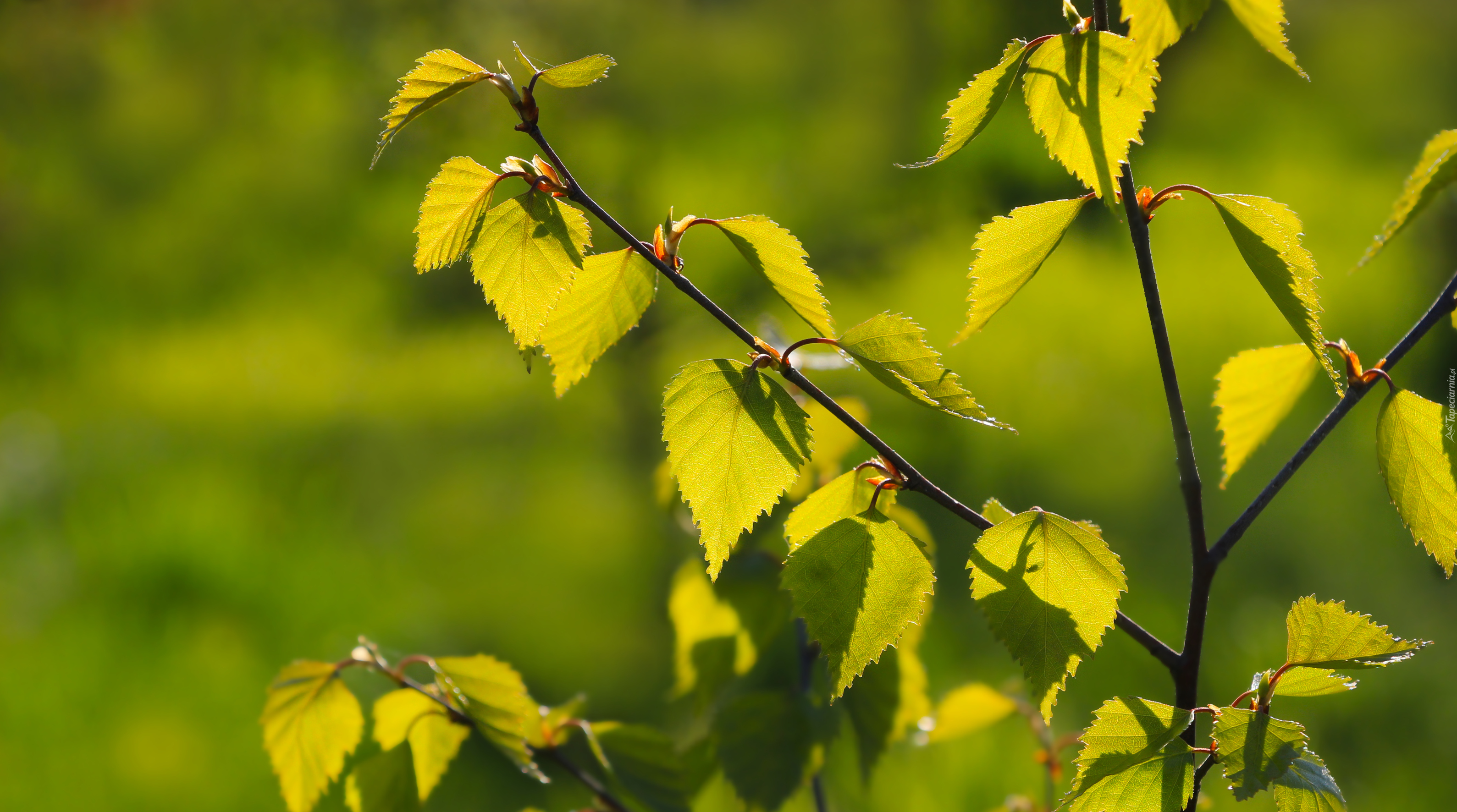 Edytor tapety: Młode listki brzozu w słonecznym blasku