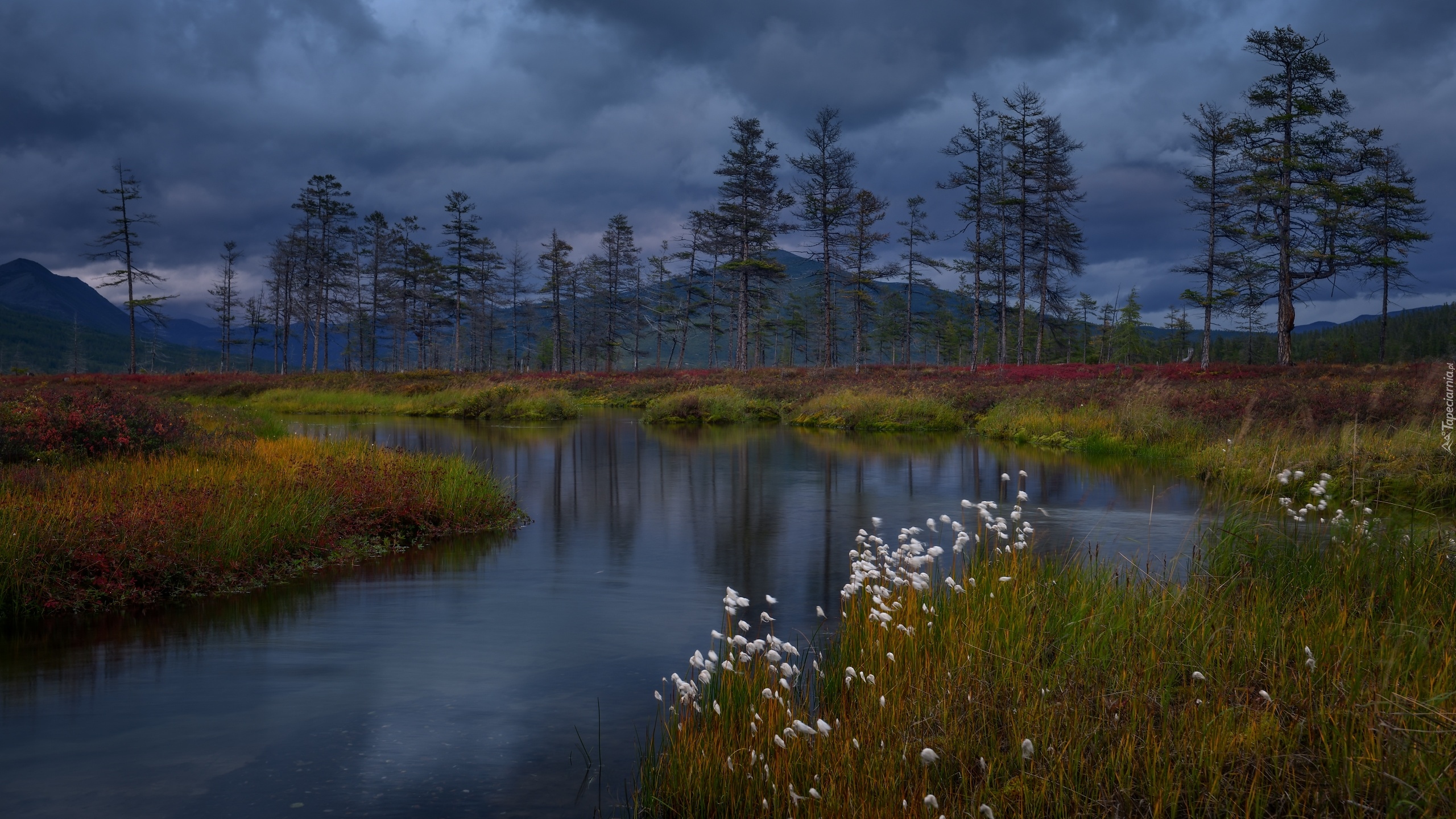 Edytor tapety: Pokryte ciemnymi chmurami niebo nad Kołymą