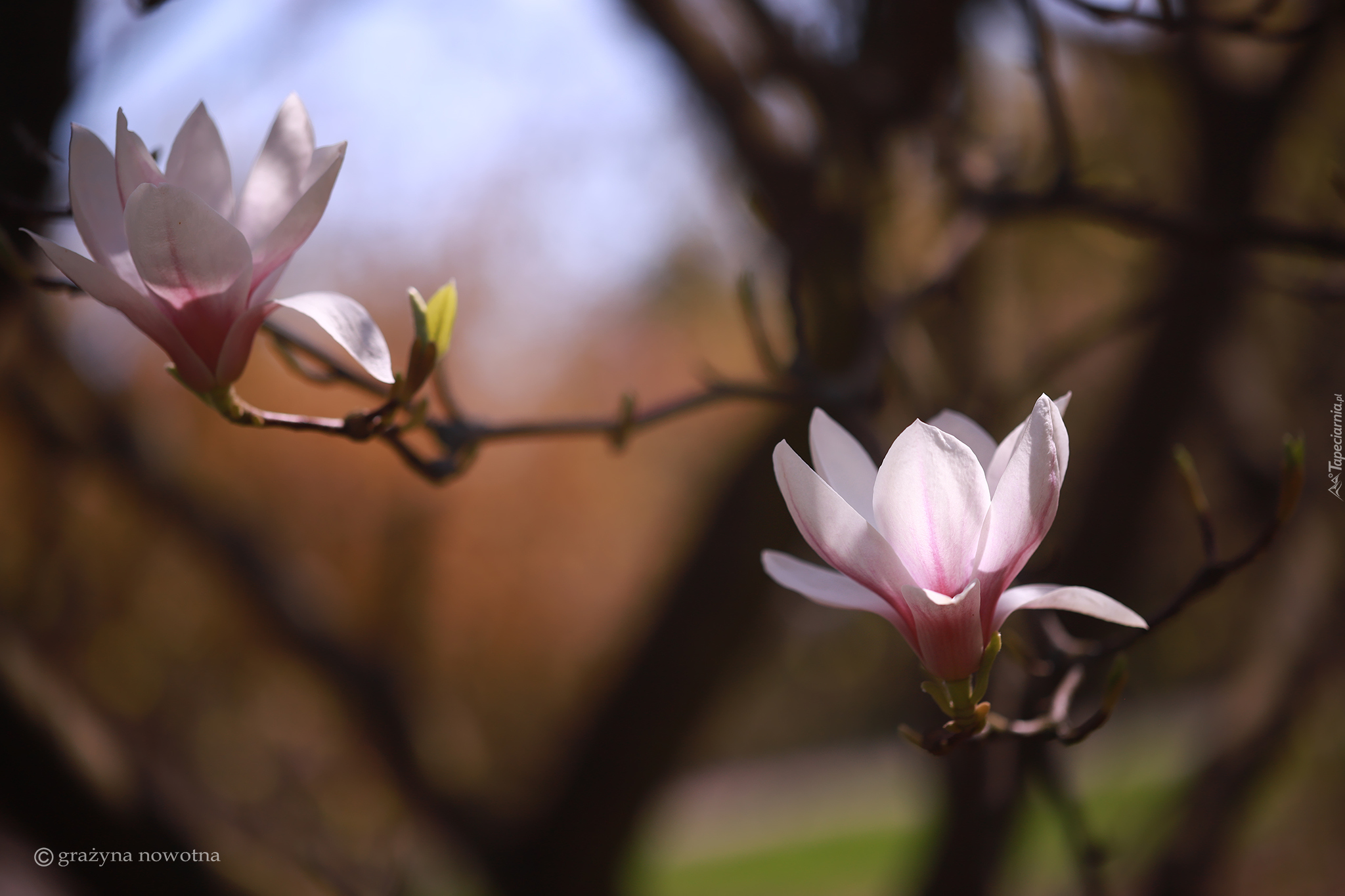 Edytor tapety: Rozświetlone dwa kwiaty magnolii