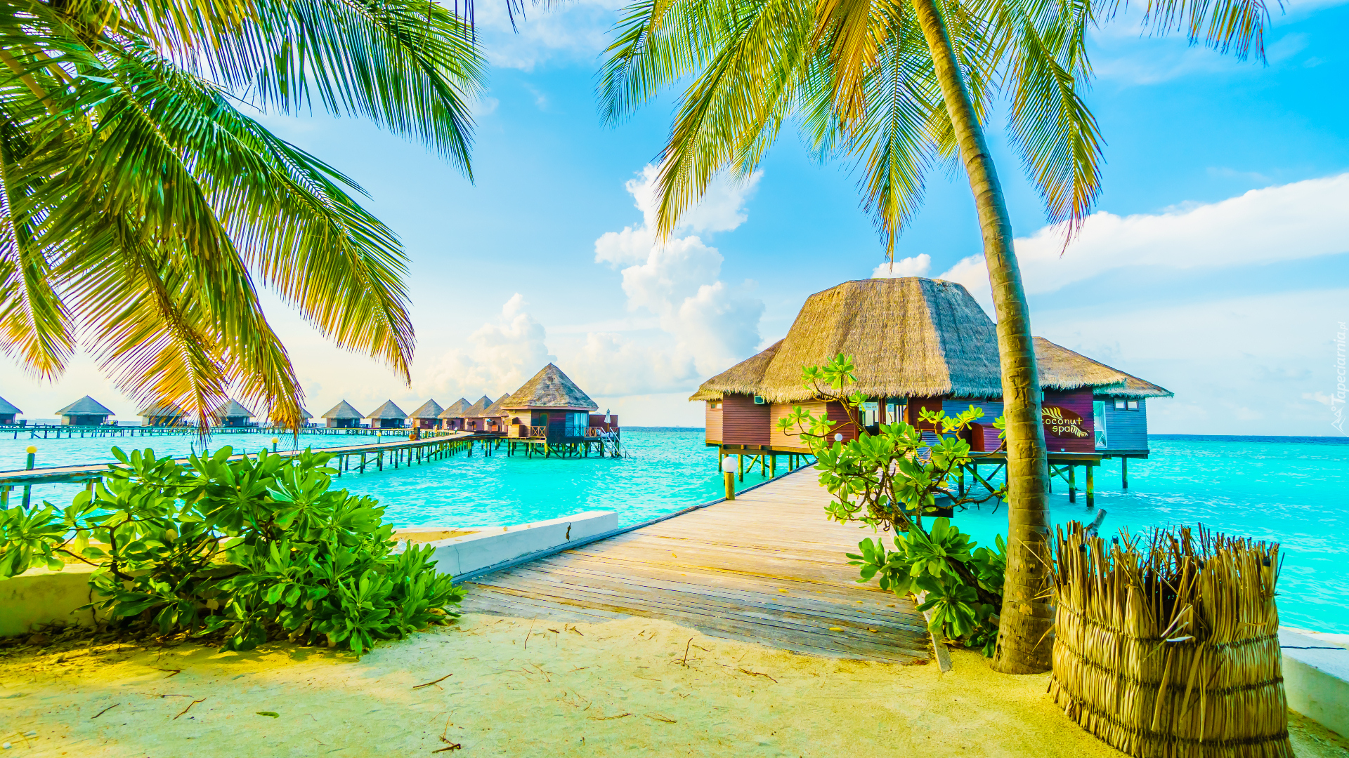 Edytor tapety: Domki na palach i drewnianych pomostach na Malediwach