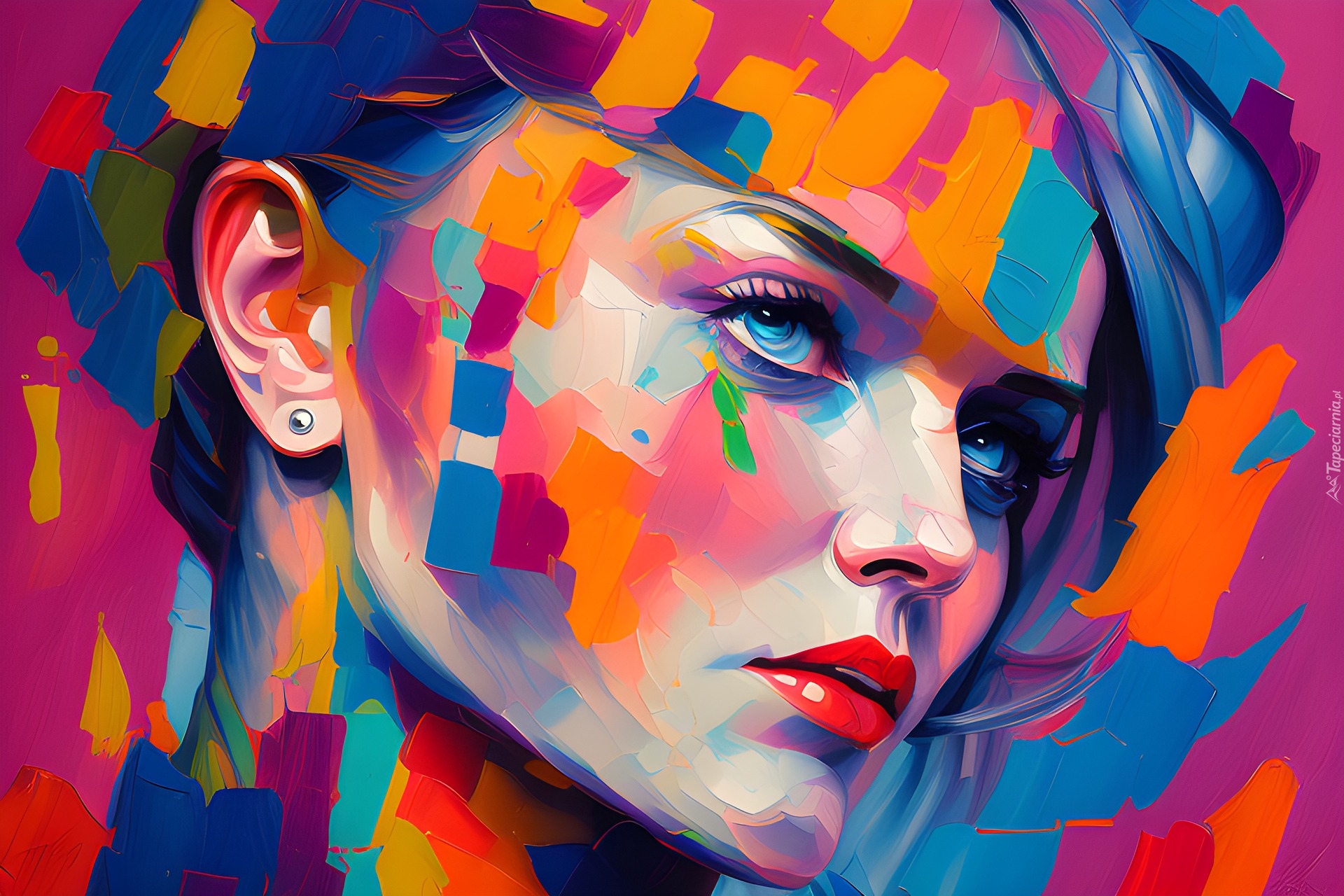 Edytor tapety: Wielobarwny obraz olejny twarzy kobiety