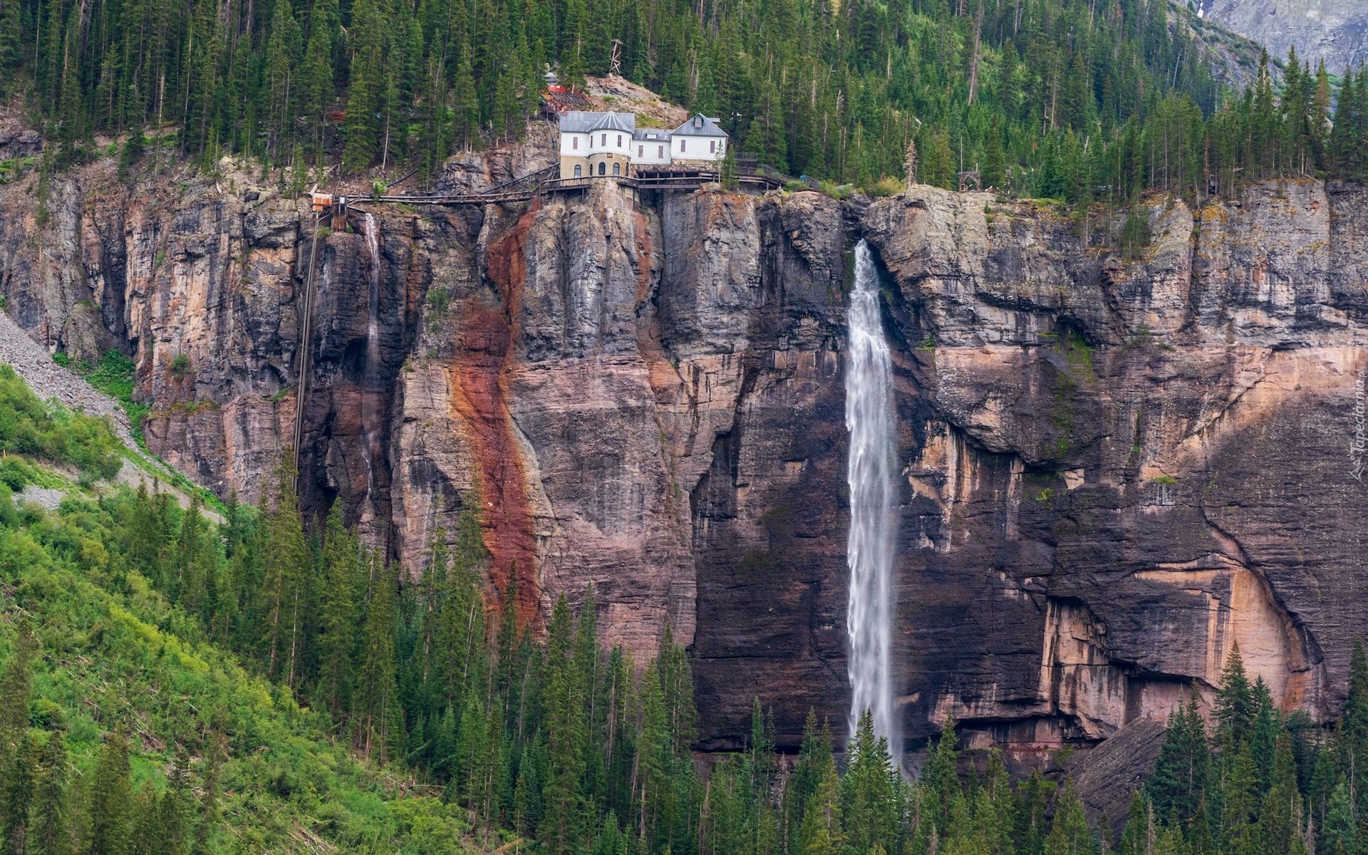 Edytor tapety: Wodospad Bridal Veil Falls na skałach w Telluride