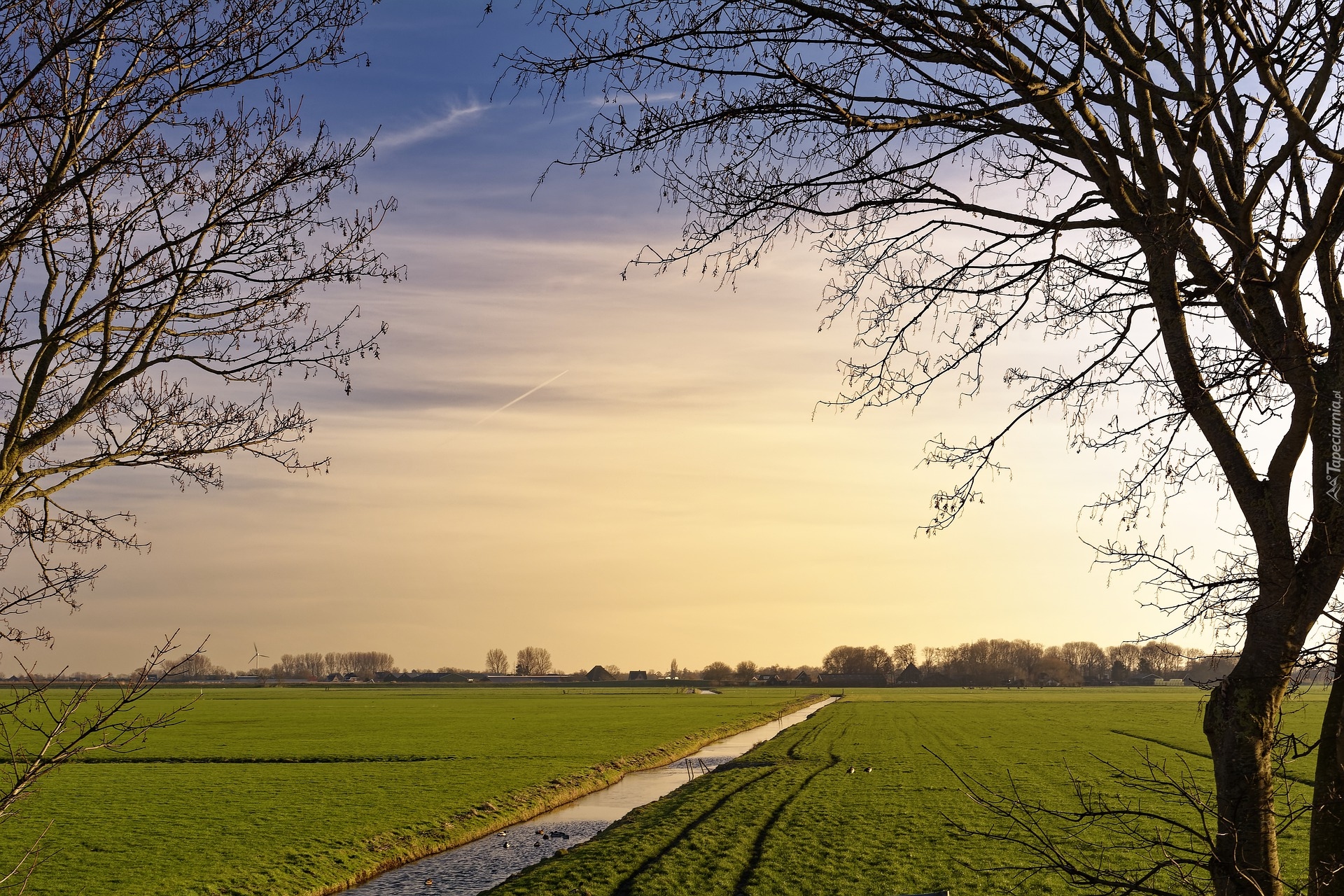 Edytor tapety: Drzewa i rzeczka na łące