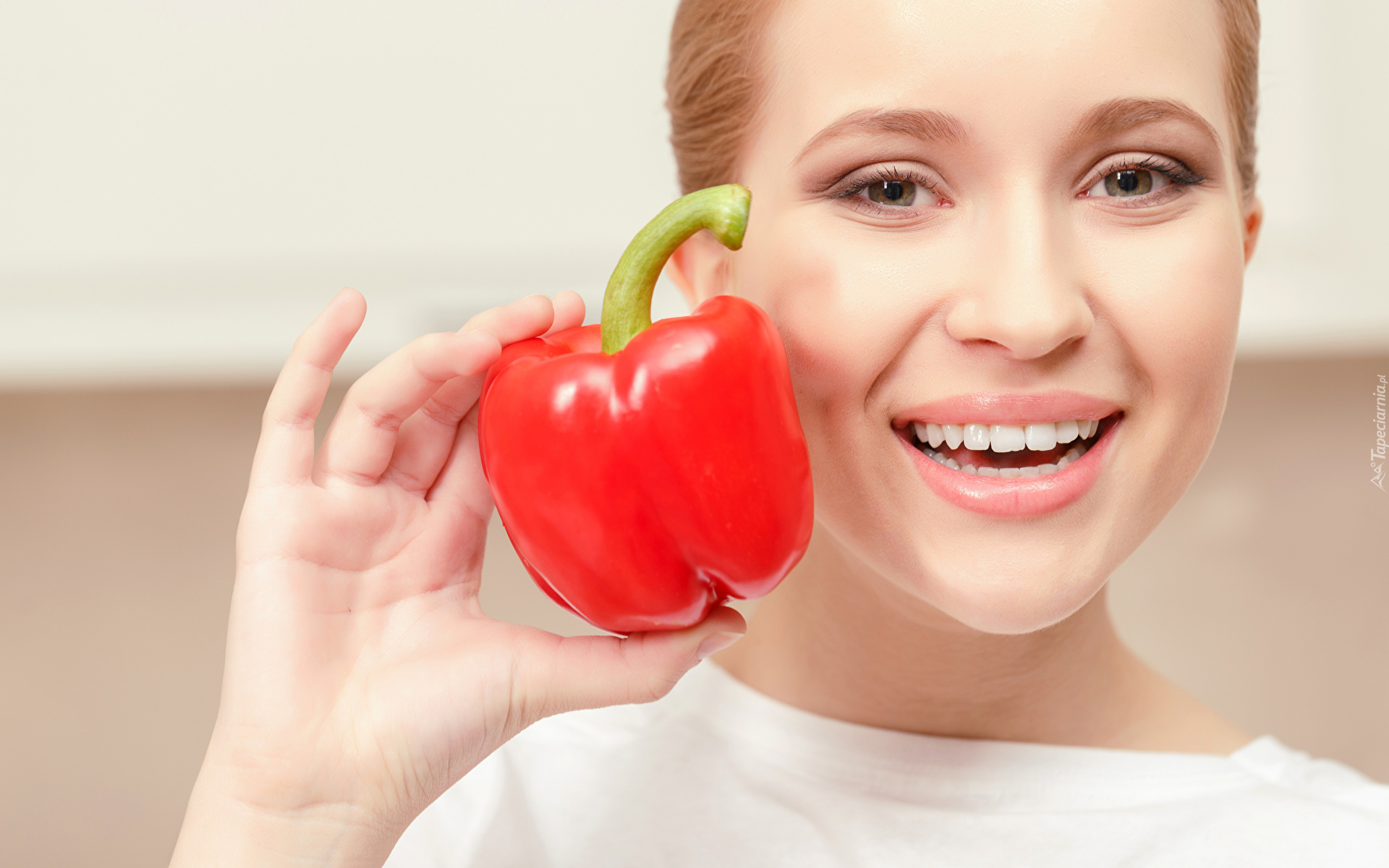 Edytor tapety: Kobieta z czerwoną papryką