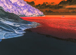 Edytor tapety: Skała na tle zalesionego wzgórza nad morzem