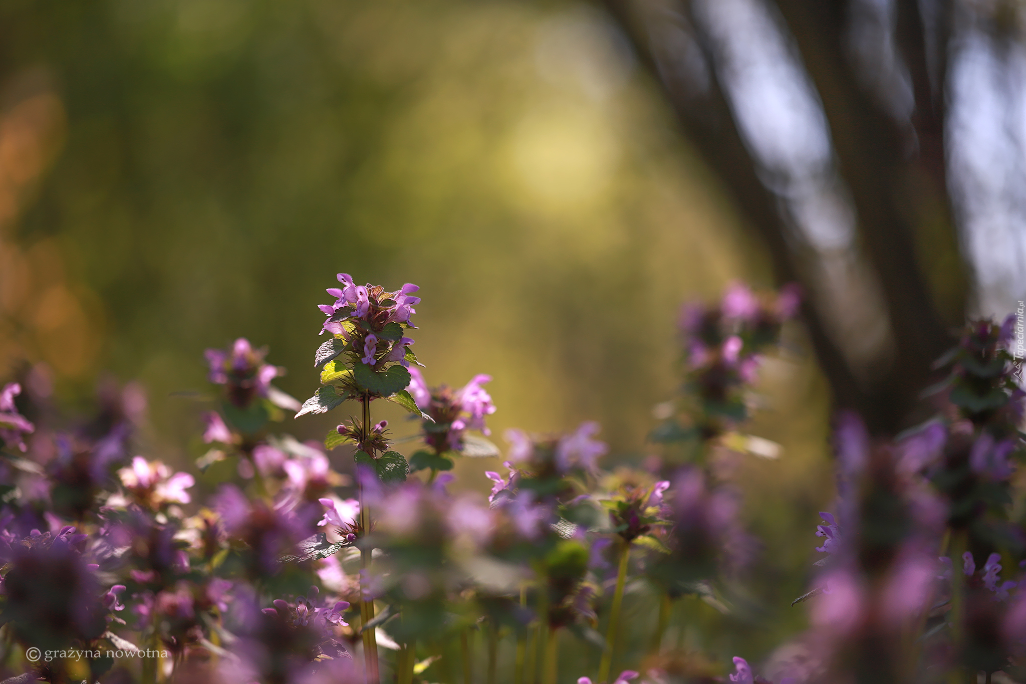Edytor tapety: Jasnota purpurowa i rozmyte tło