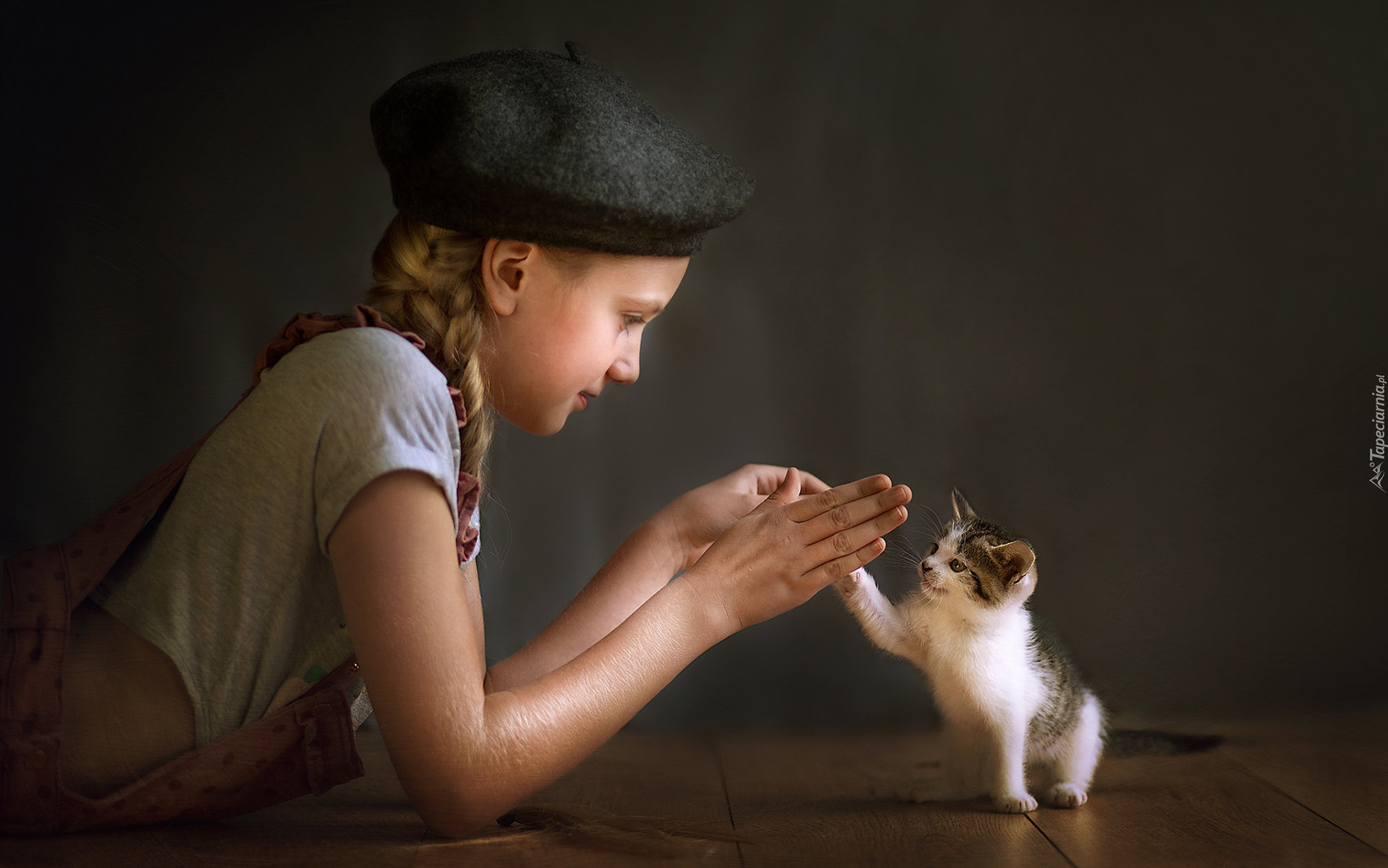Edytor tapety: Dziewczynka z maleńkim kotkiem