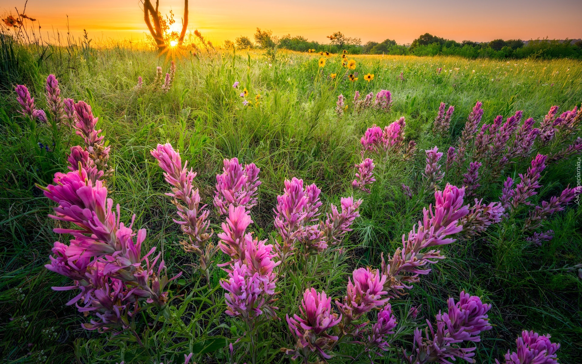 Edytor tapety: Polne kwiaty na łące w promieniach słońca