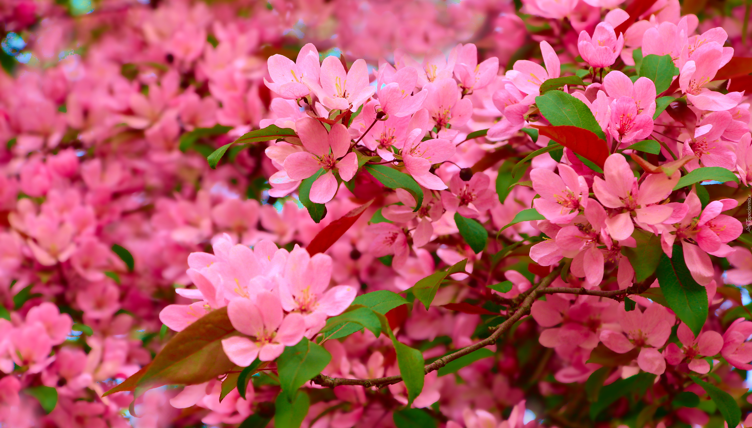 Edytor tapety: Gałązki z jasnoróżowymi kwiatami drzewa owocowego
