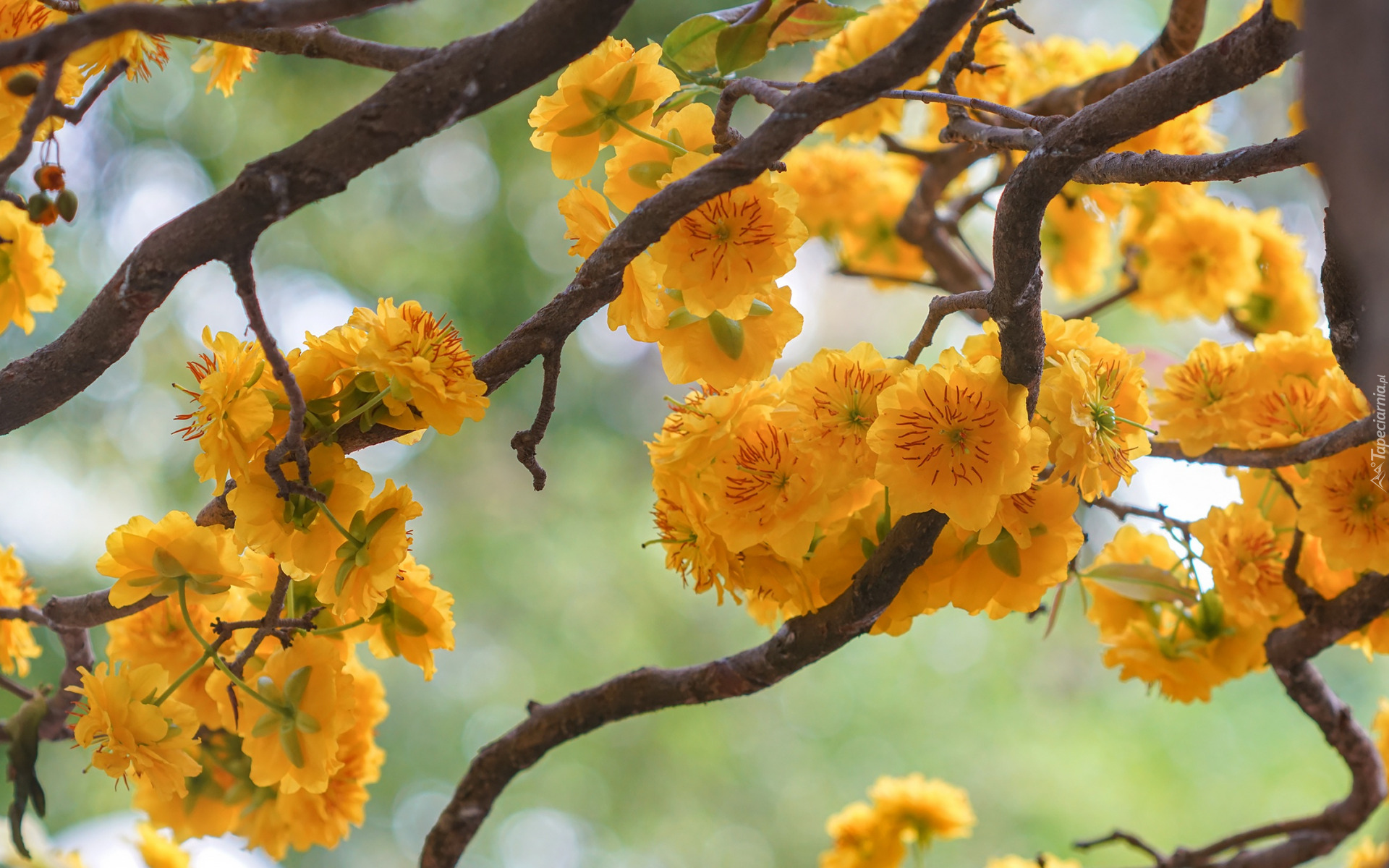 Edytor tapety: Żółte kwiaty na gałązkach drzewa