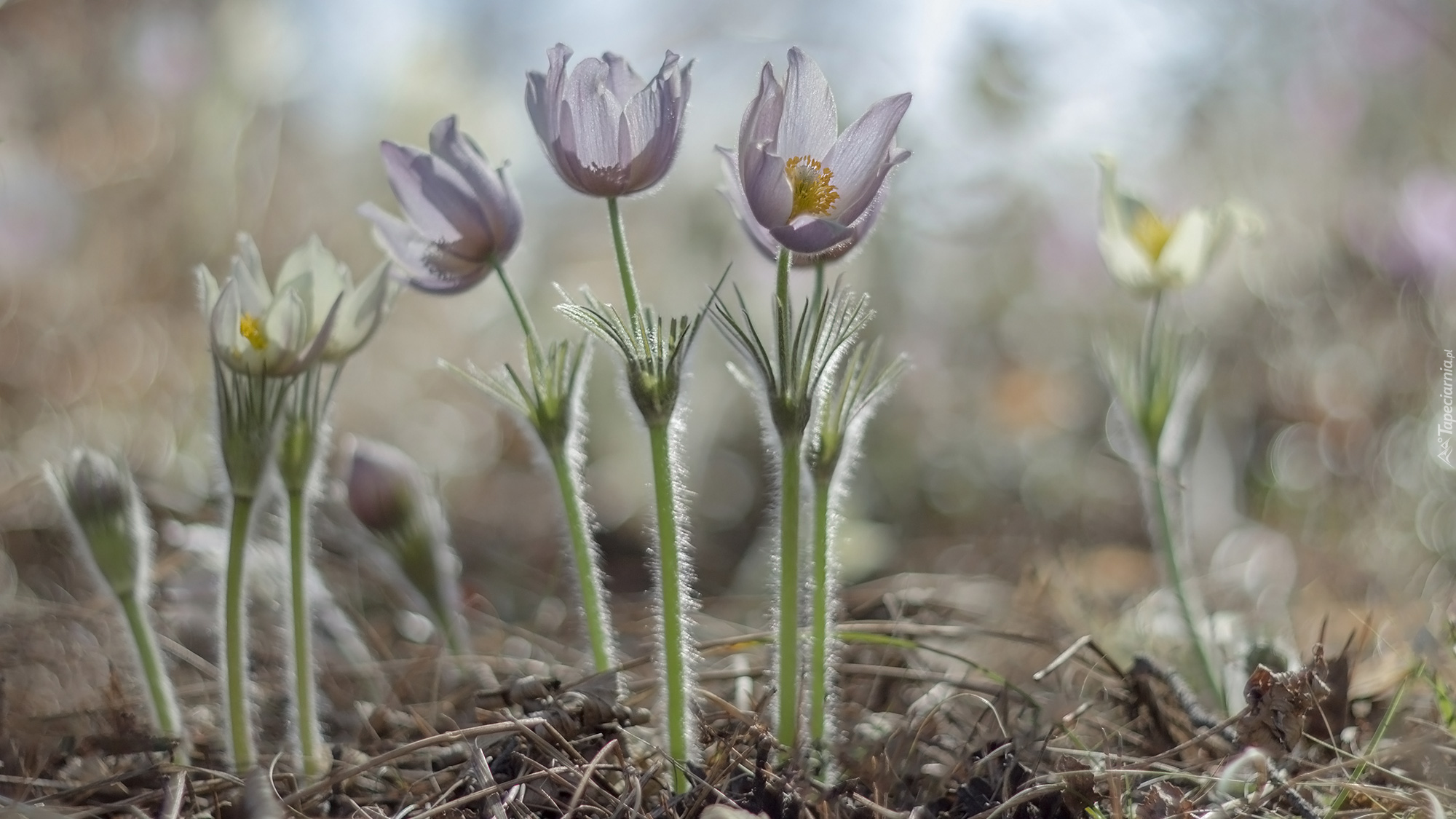 Edytor tapety: Rozkwitające sasanki w zbliżeniu