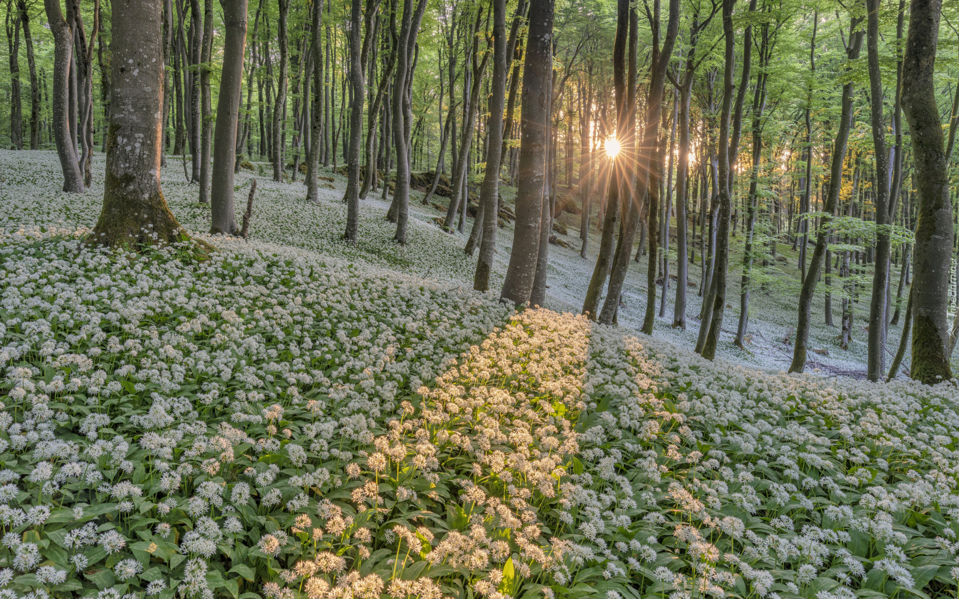 Edytor tapety: Czosnek niedźwiedzi pośród drzew