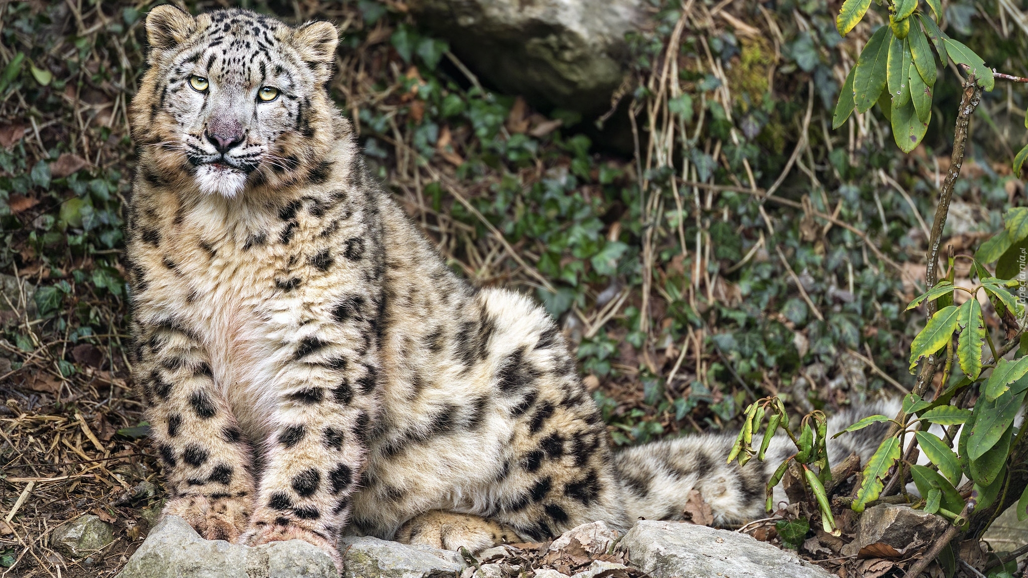 Edytor tapety: Irbis na kamieniu