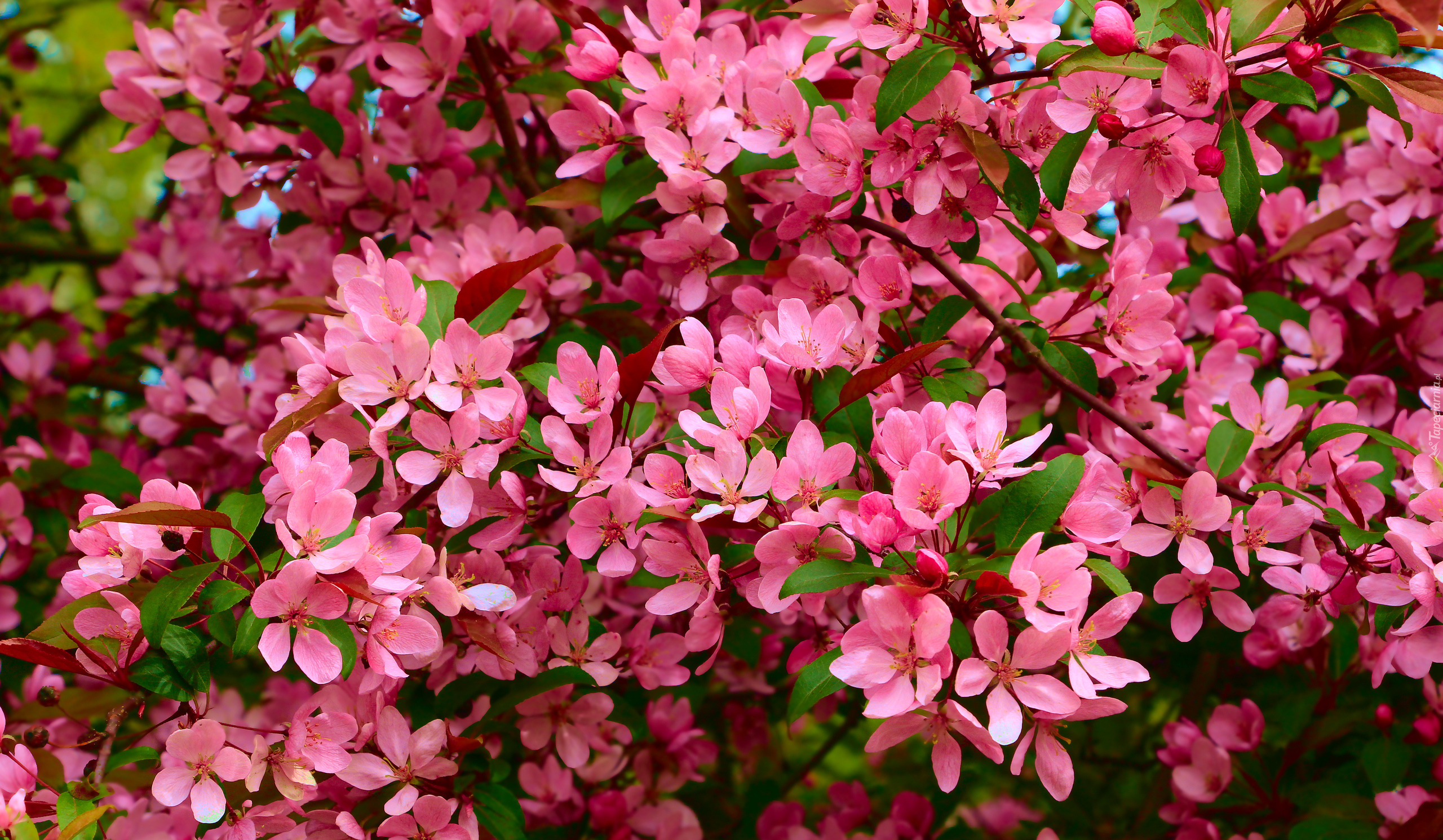 Edytor tapety: Gałęzie z różowymi kwiatami drzewa owocowego