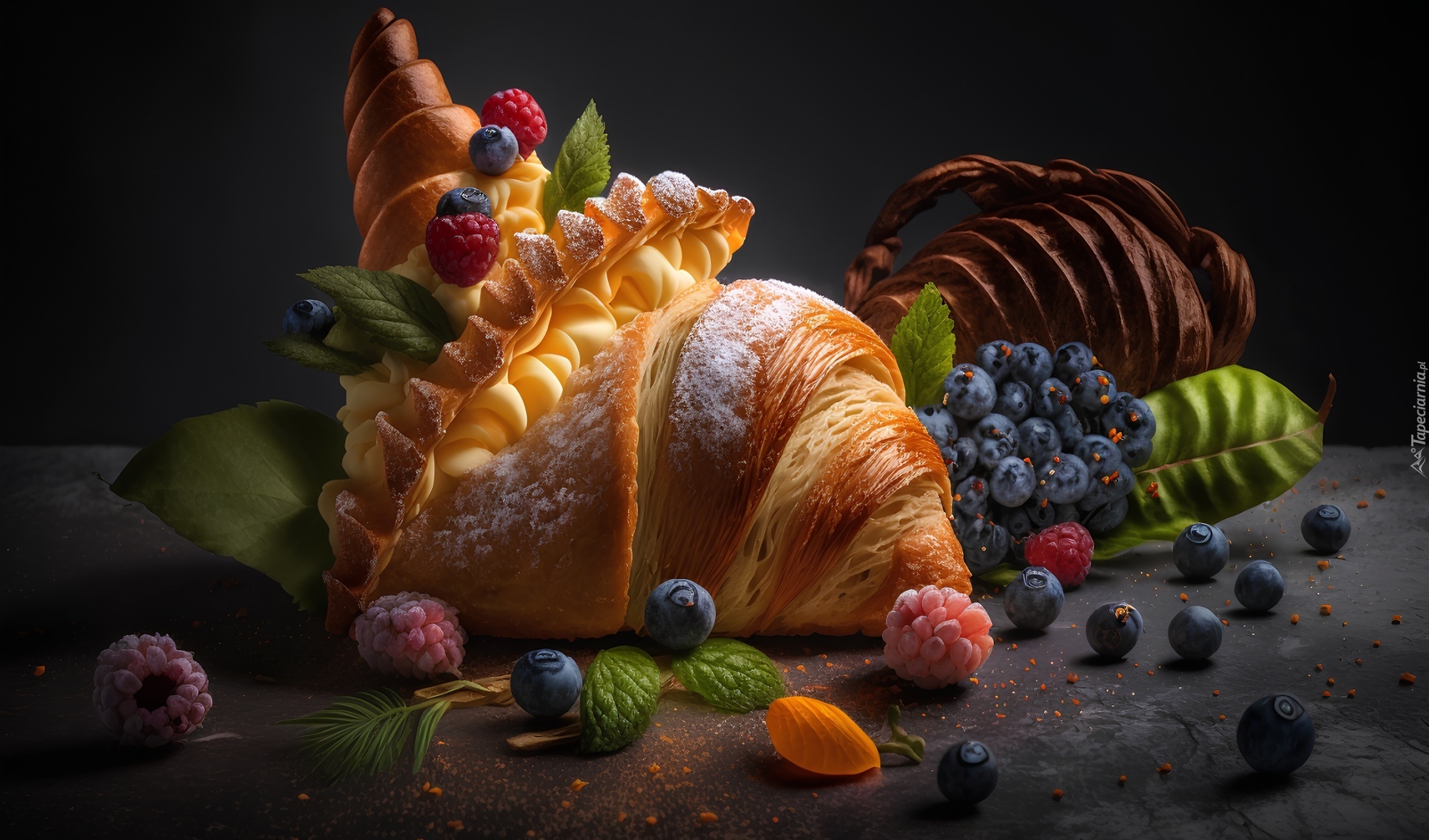 Edytor tapety: Rogalik z kremem i owocami
