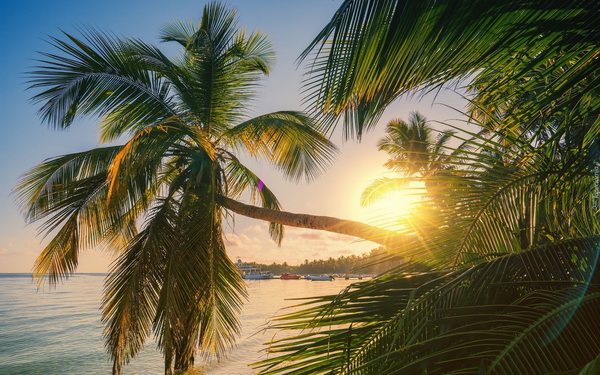Edytor tapety: Rozświetlone słońcem palmy na Dominikanie