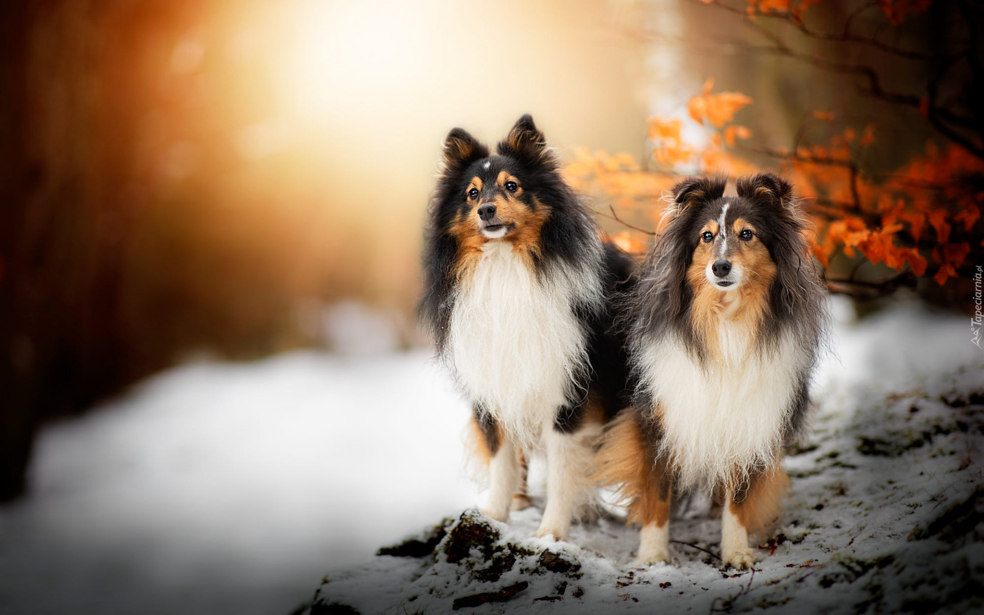 Edytor tapety: Dwa owczarki szetlandzkie na śniegu