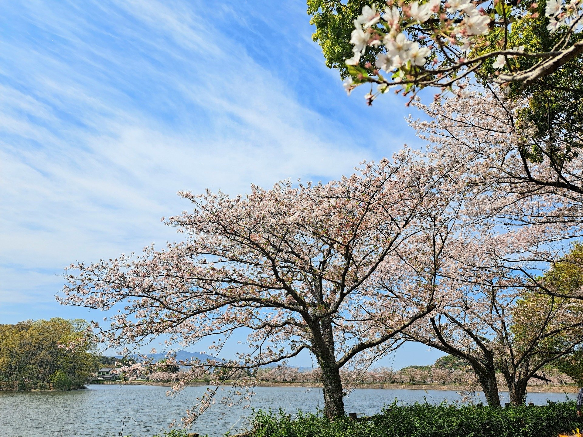 Edytor tapety: Kwitnące drzewa wiśni nad rzeką