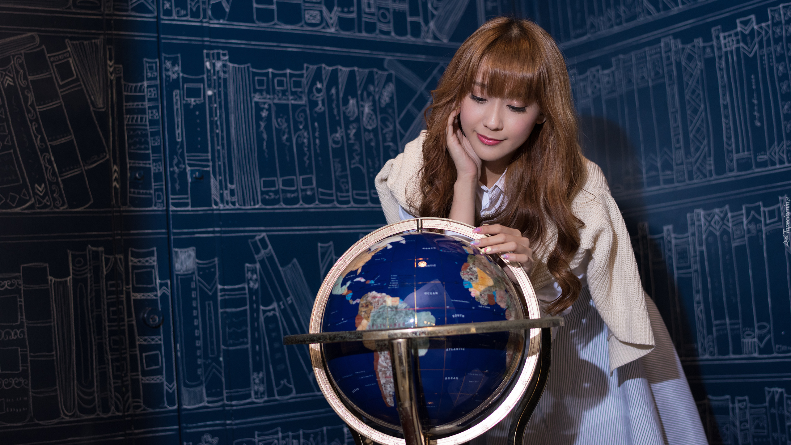 Edytor tapety: Pochylona kobieta nad globusem