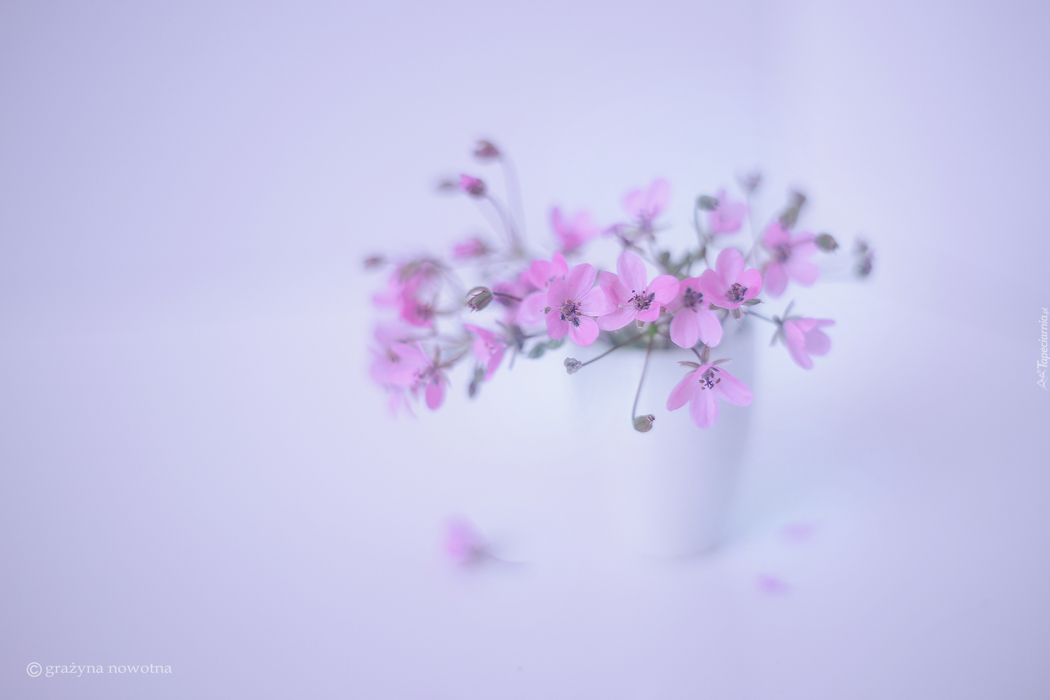 Edytor tapety: Różowa iglica pospolita w małym wazoniku