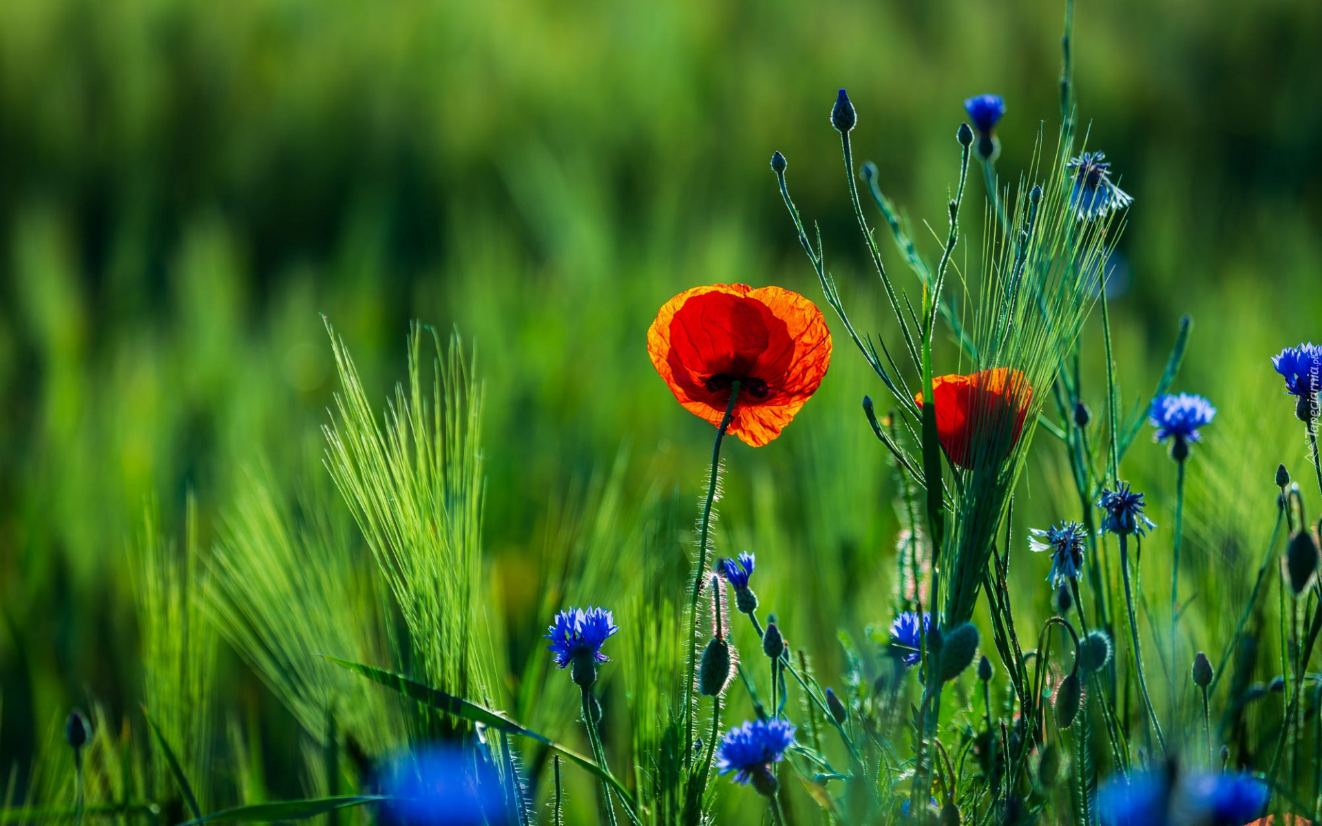 Edytor tapety: Kwitnące w polu maki i chabry