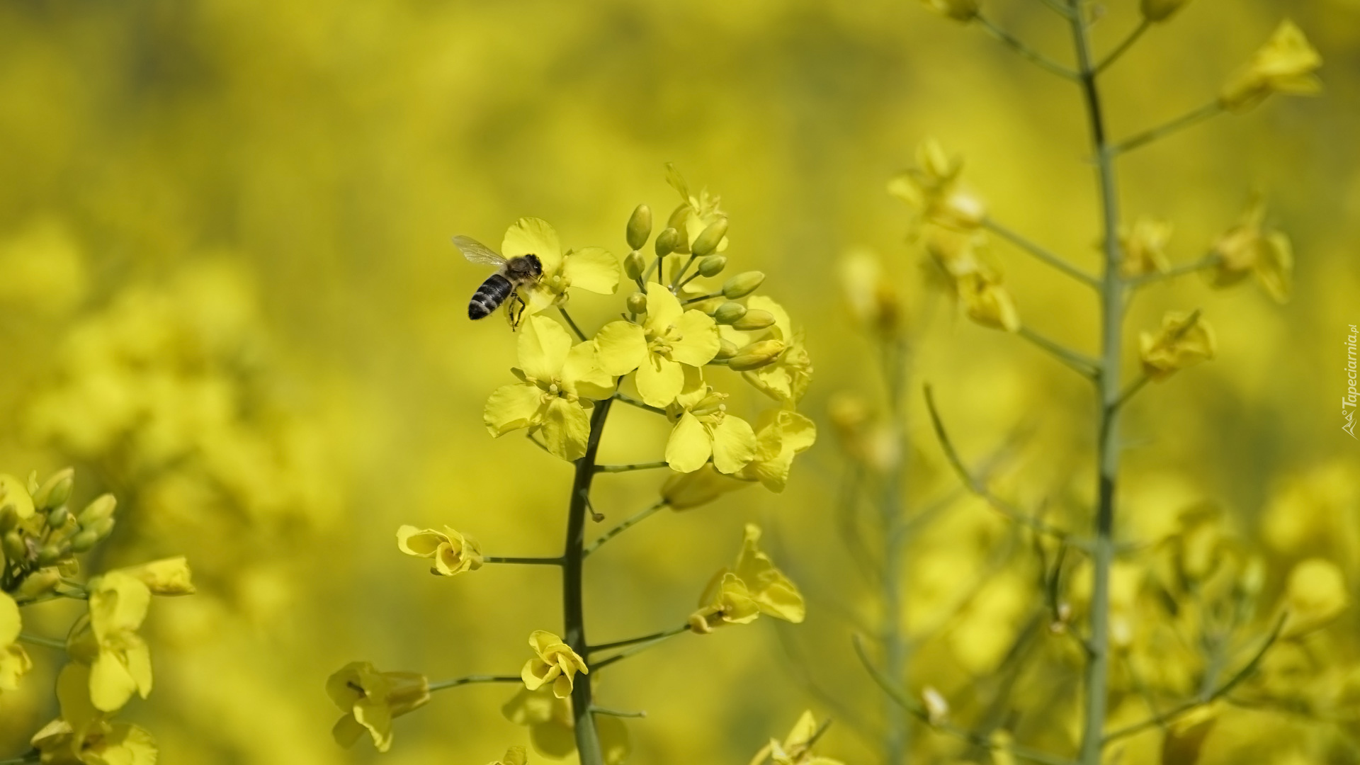 Edytor tapety: Pszczoła na kwiatach rzepaku