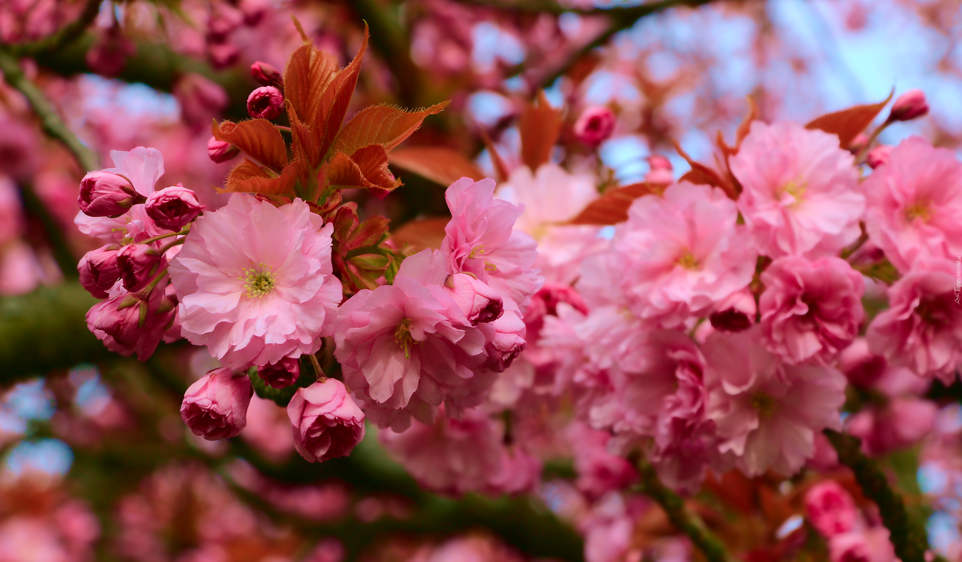 Edytor tapety: Kwiaty wiśni japońskiej w rozmyciu