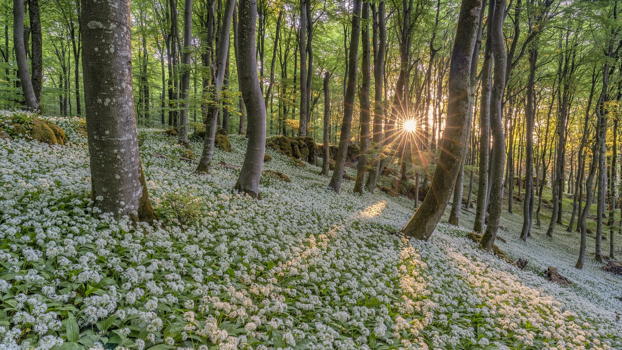Edytor tapety: Czosnek niedźwiedzi pod rozświetlonymi drzewami
