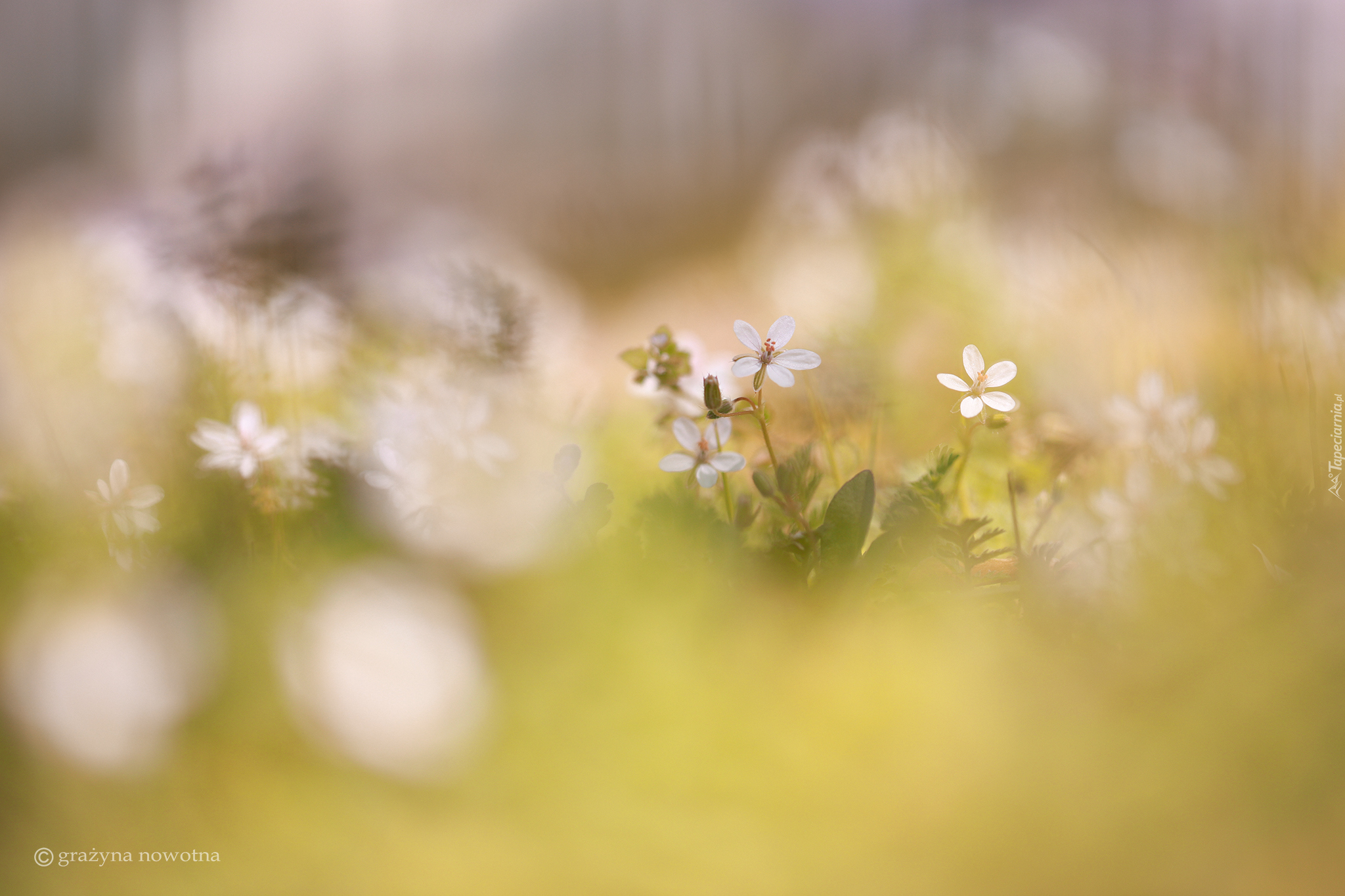 Edytor tapety: Białe iglice pospolite na rozmytym tle